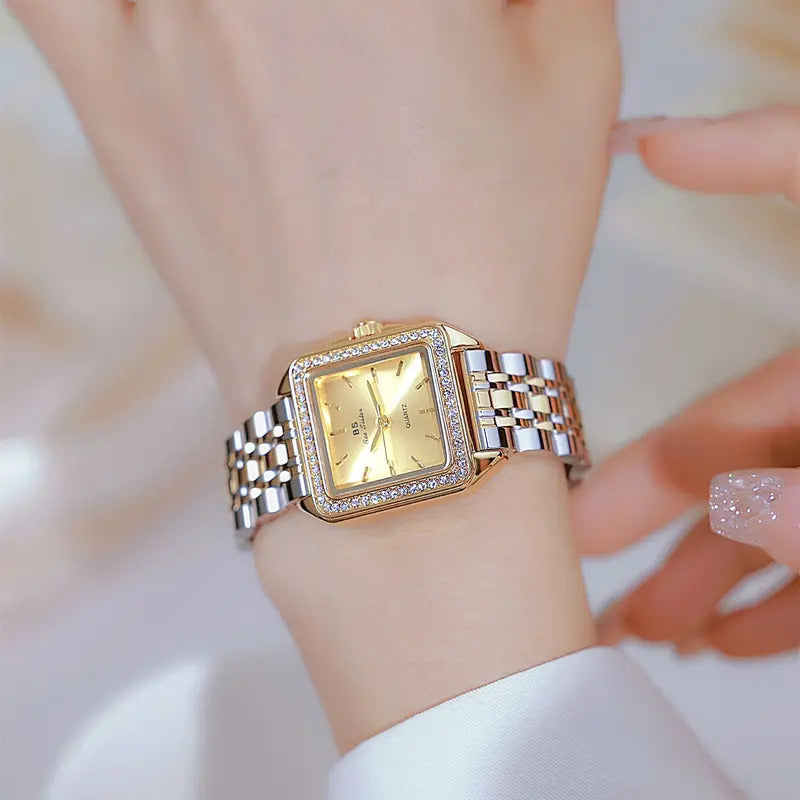 手表女UTHAI Watch Women Authentic Light Luxury and Simple Elegance Gold Square Wristwatch Steel Band Ladies Fashion Quartz Watches