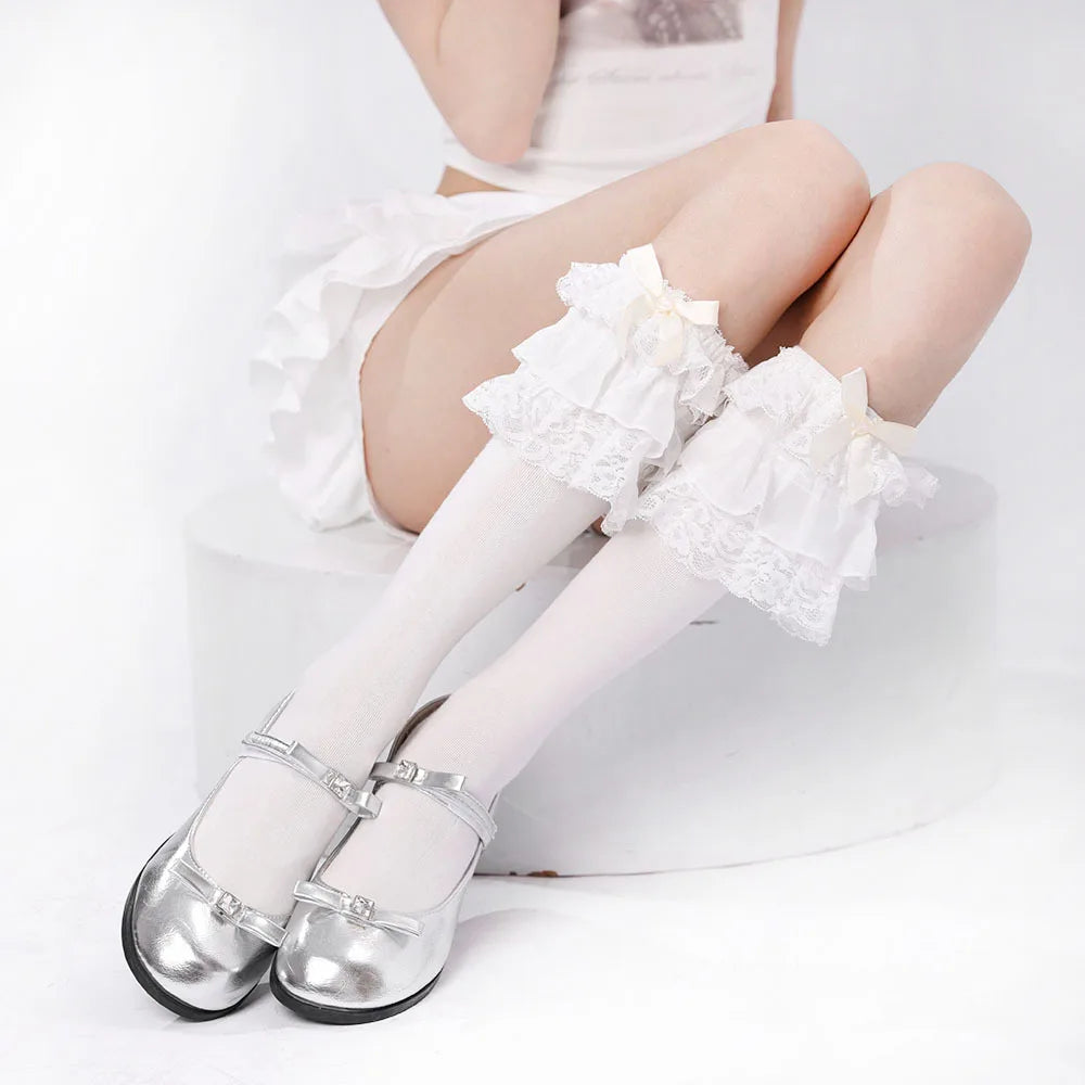 Specification: Material: 100% Cotton Pattern Type: Lace Ruffle Gender: Women Item Type: Knee High Socks...