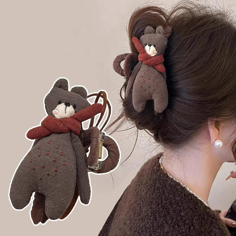发饰Cute Animal Hair Claw High End Ab Face Cartoon Cloth Doll Scarf Bear Shark Clips for Women Girl Kawaii Hairpins Hair Accessories