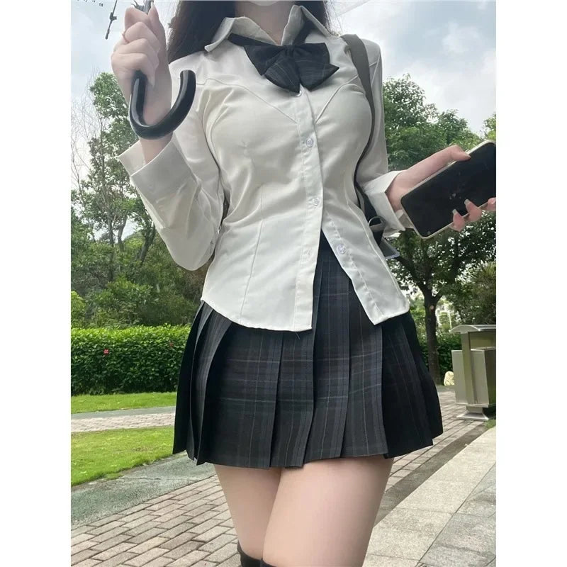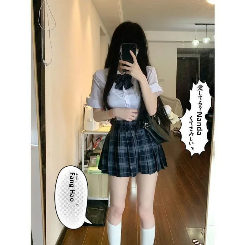?€? Authentic Japanese Style : This Orthodox JK uniform waist shirt and lattice skirt set...