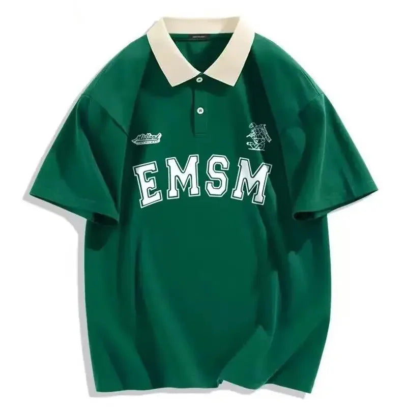POLO男2024 Summer Men's American Style Polo Shirt Youth Popular T-shirt Half Sleeve Loose Fit Slimming Vintage Printing Top