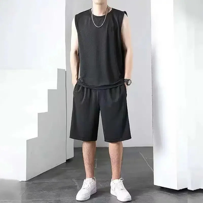 男士套装Simple Sleeveless Sports Suit For Men And Women Summer Running 2-Piece Set Couple Matching Trendy Slims Smooths Your Silhouette