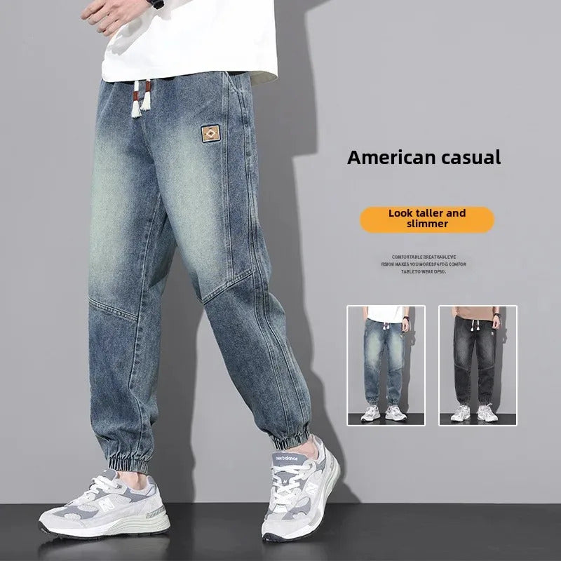 牛仔裤男2024 New Men's Jeans Elastic Waist Loose-fit Casual Trendy Harem Pants Comfortable Sports Vintage Style For Male Students