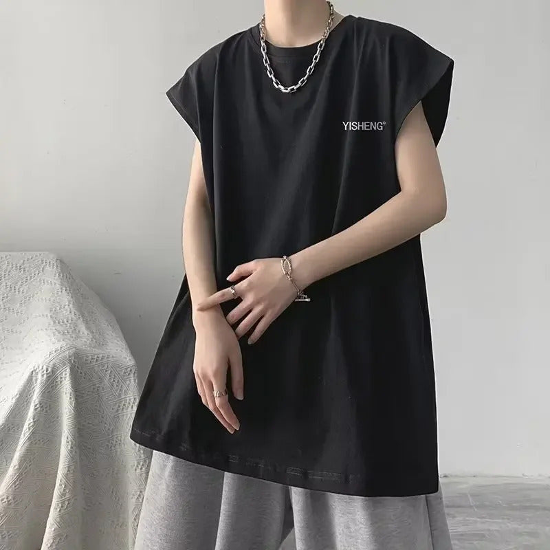 男士背心New Solid Color Men's Sweatshirt INS Fashionable Trendy Printing Sleeveless T-Shirt Loose-Fit Plus Size Summer Versatile Outerwe