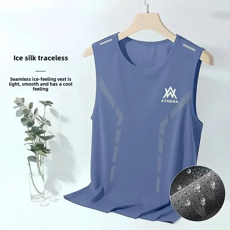 男士背心Ice Silk Vest Men's Trendy Thin Breathable Quick Dry Sports Casual Wide Shoulder Strap Outdoor round Neck Sleeveless T-Shirt Sum