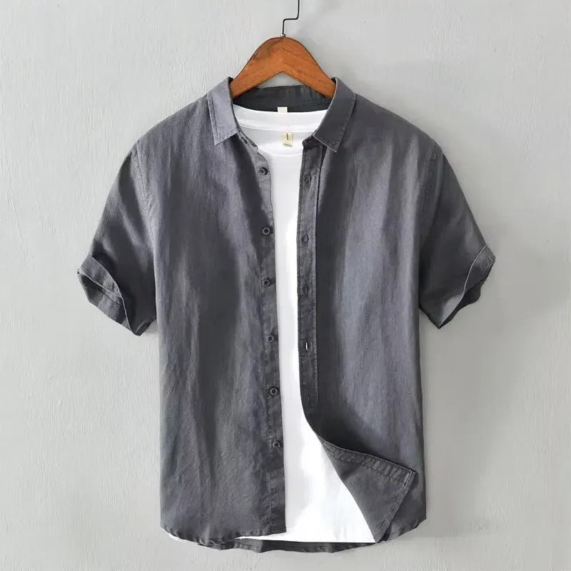 衬衫男Foreign Trade Summer Men's Wear Casual Short Sleeve Oxford Cloth Shirt Comfortable Youth Thin Style Solid Color Cotton Simple To