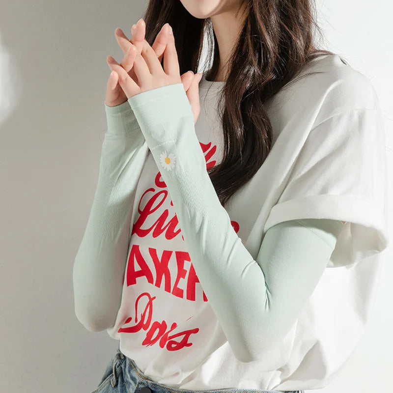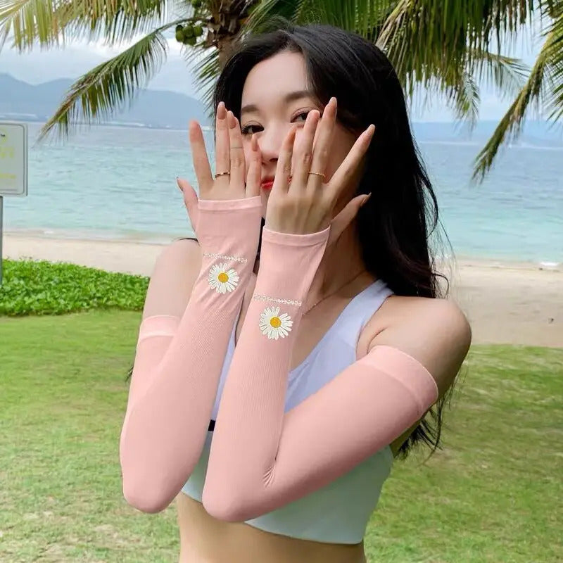 防晒冰袖女1 Pair Women Cooling Anti-UV Driving Arm Sleeves Girls Sun Protection Arm Covers For Ladies Running Riding Outdoor Sports
