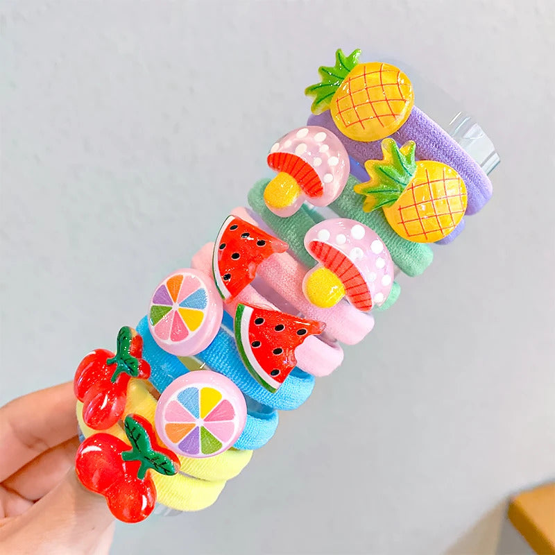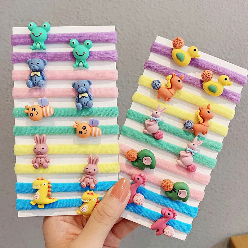 10PCS/Set New Girls Cute Cartoon Scrunchie Ponytail Holder Rubber Bands Kids Lovely Hair Bands Headband Fashion Hair Accessories