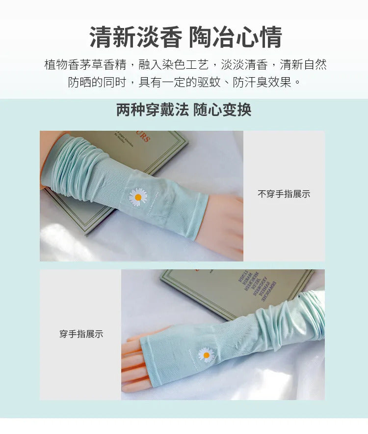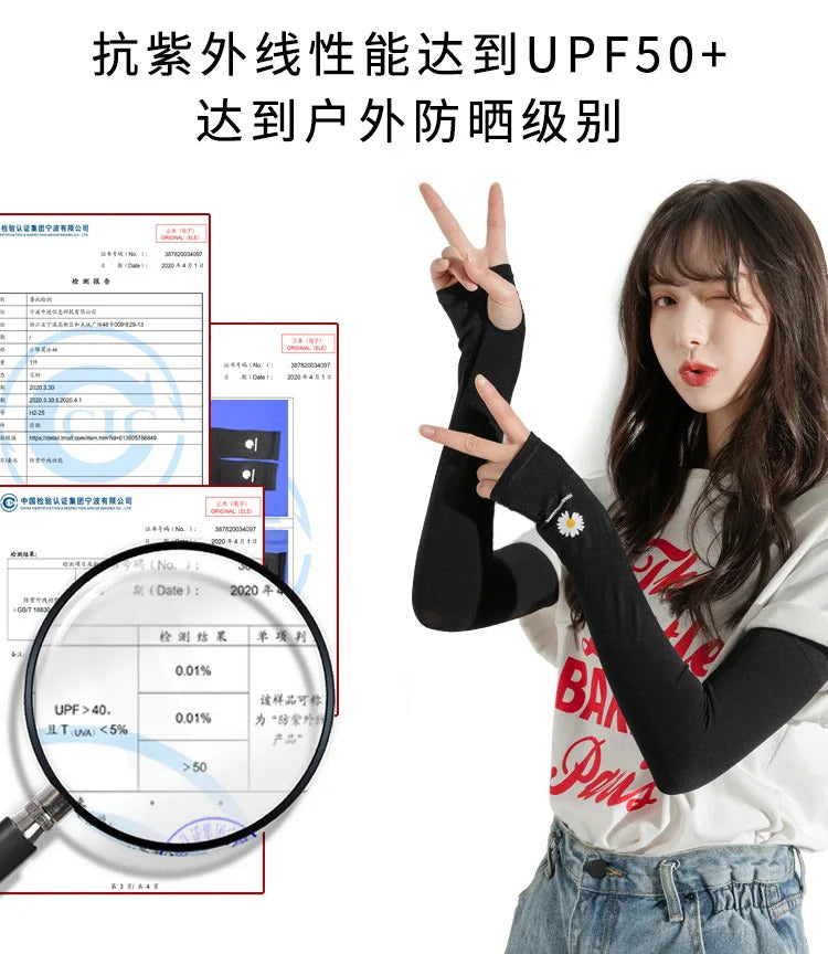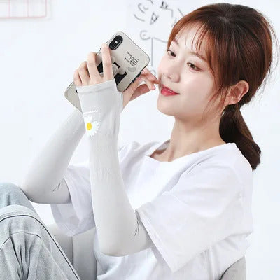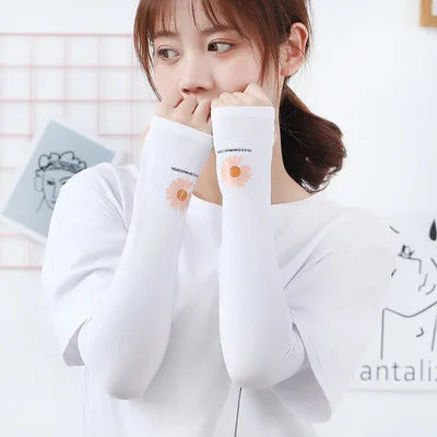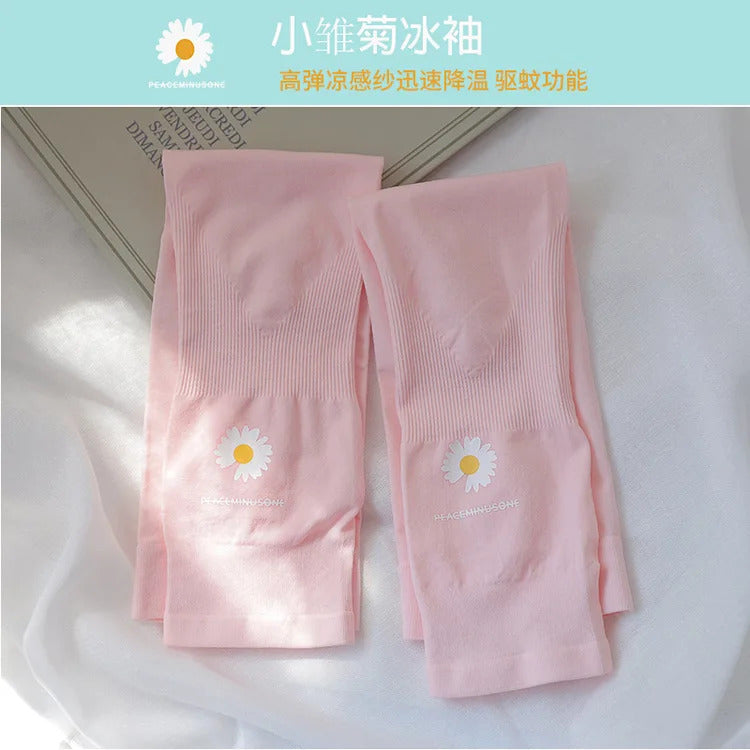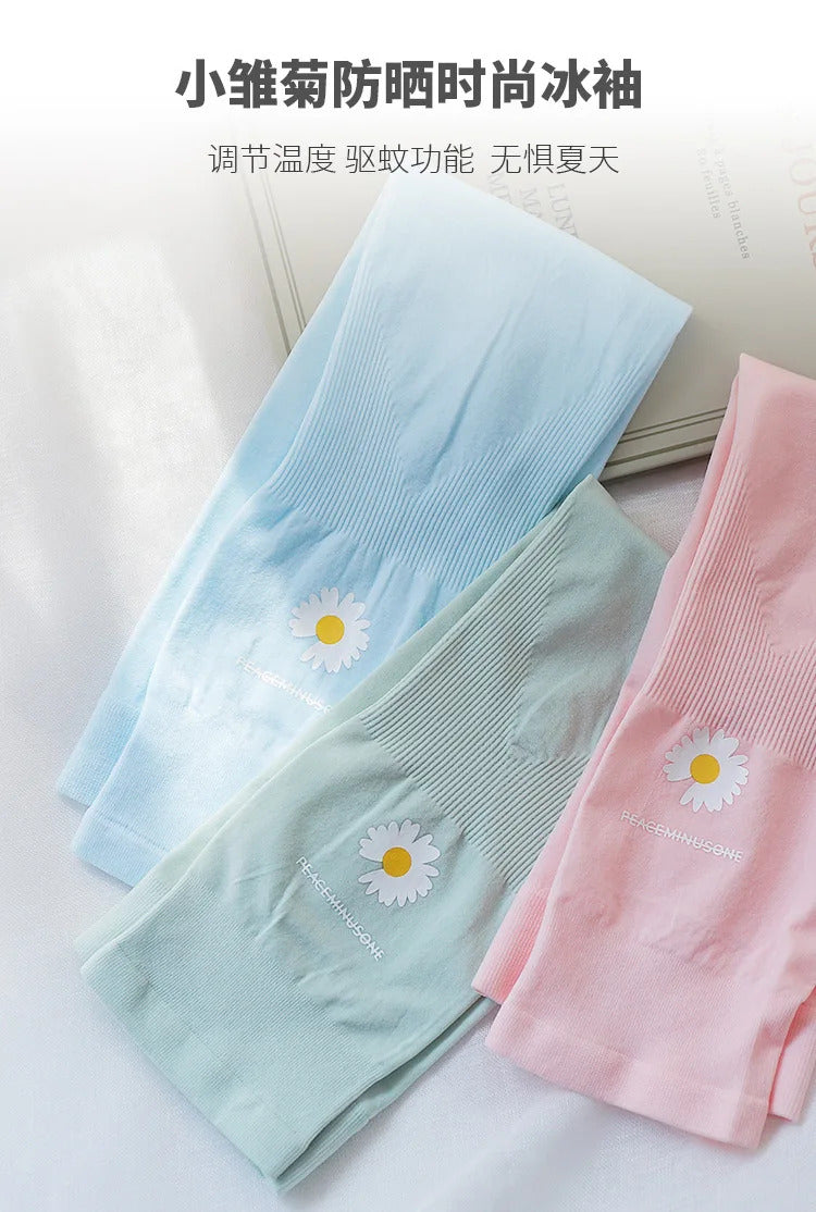 防晒冰袖女1Pair Daisy Arm Sleeves Warmers Sports Sleeve Sun UV Protection Hand Cover Cooling Warmer Running Fishing Cycling