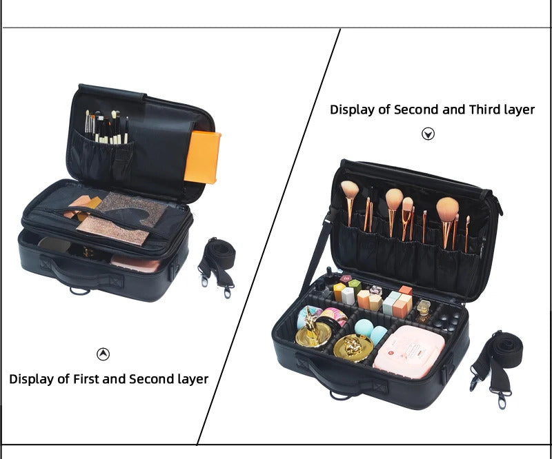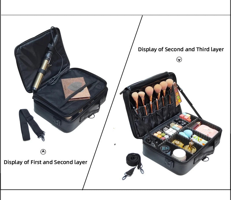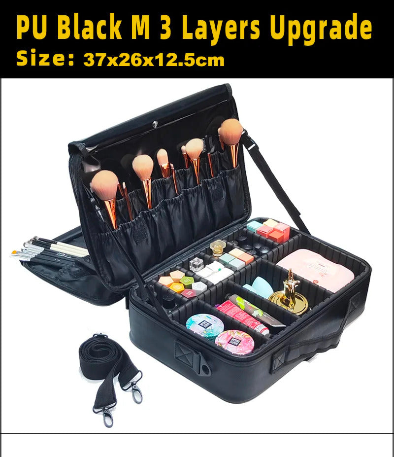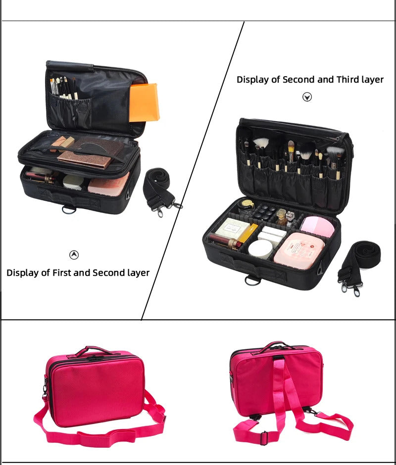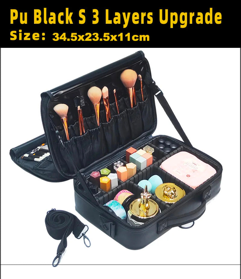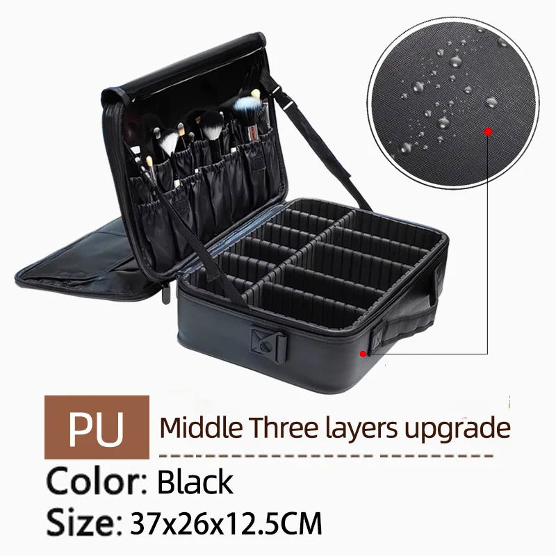 包包2022 New High Quality Professional Makeup Case For Women With Compartments PU Leather Waterproof Travel Large Capacity Storage