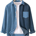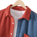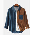衬衫男2023 Amazon Best Selling Autumn Corduroy Lapel Color Blocking Long Sleeve Men's Casual Shirt from China Mainland