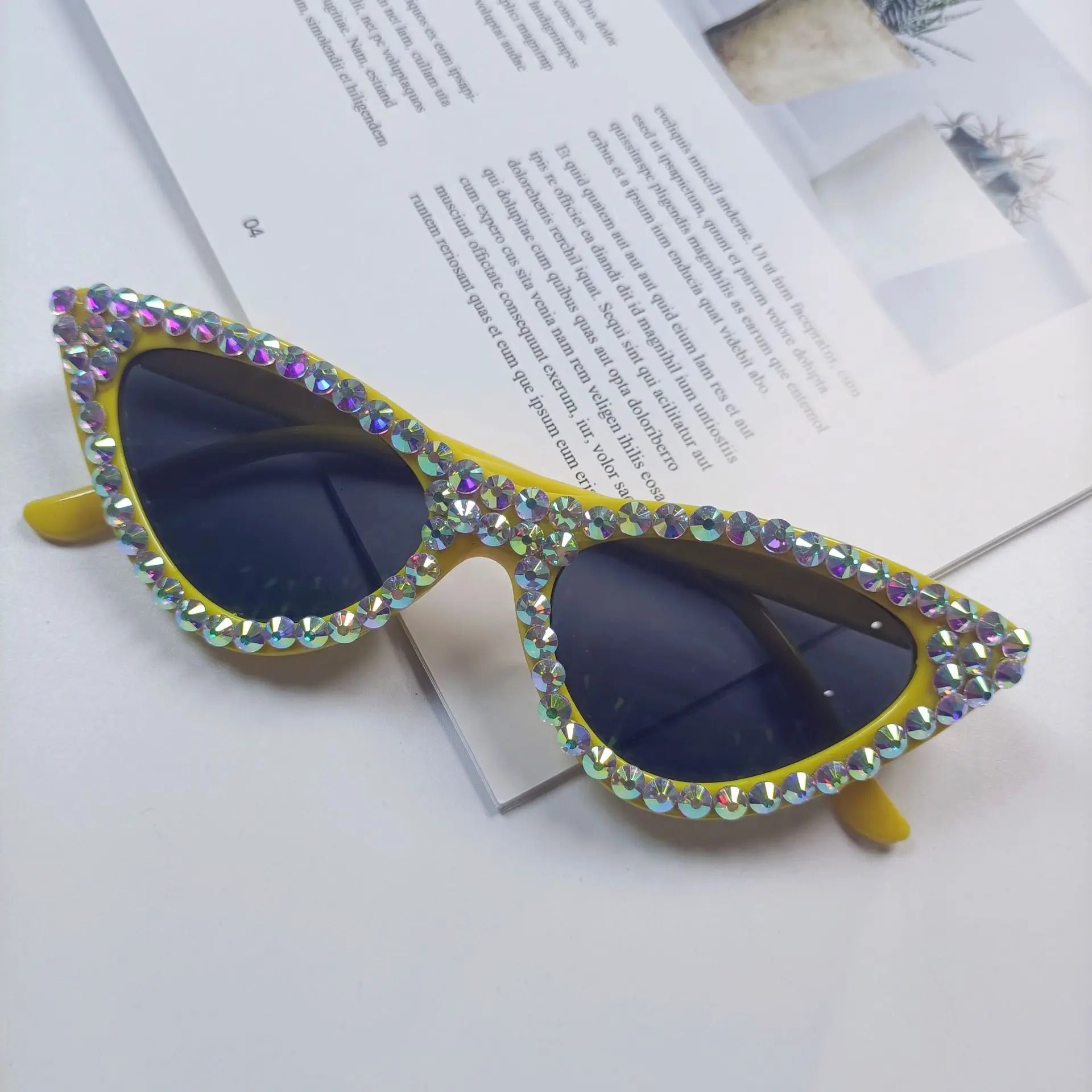 眼镜女2023 Vintage Triangle Cat Eye Women Sunglasses Personality PC Frame Resin Lens Travel Eyewear Girls Cute Small Frame Goggles