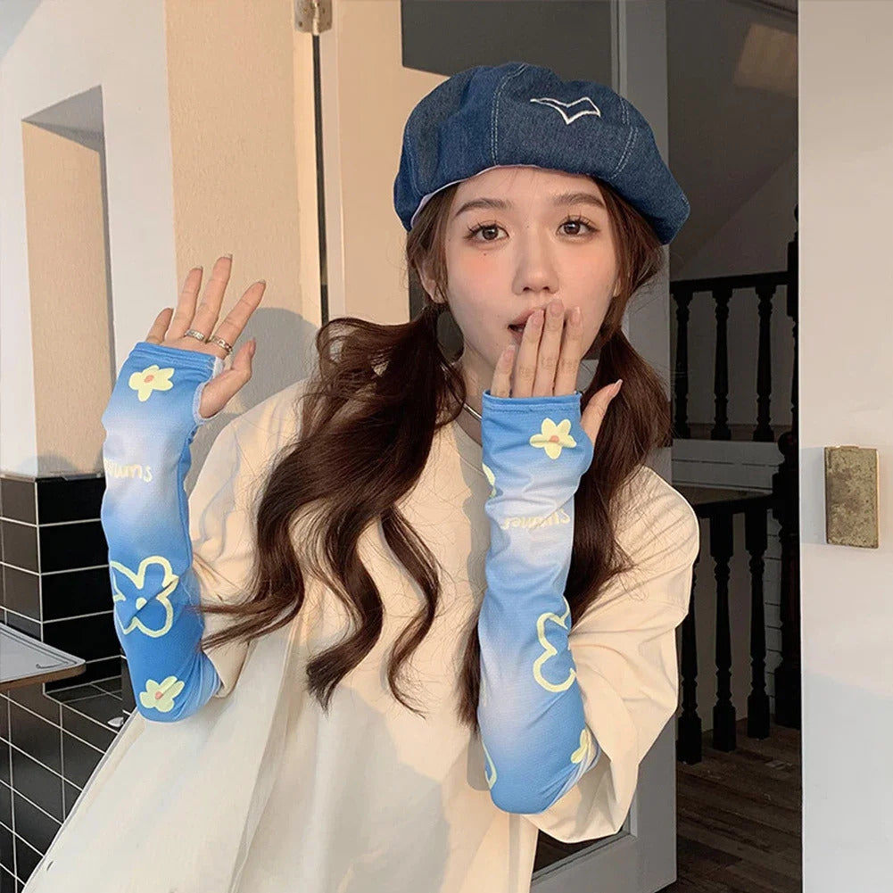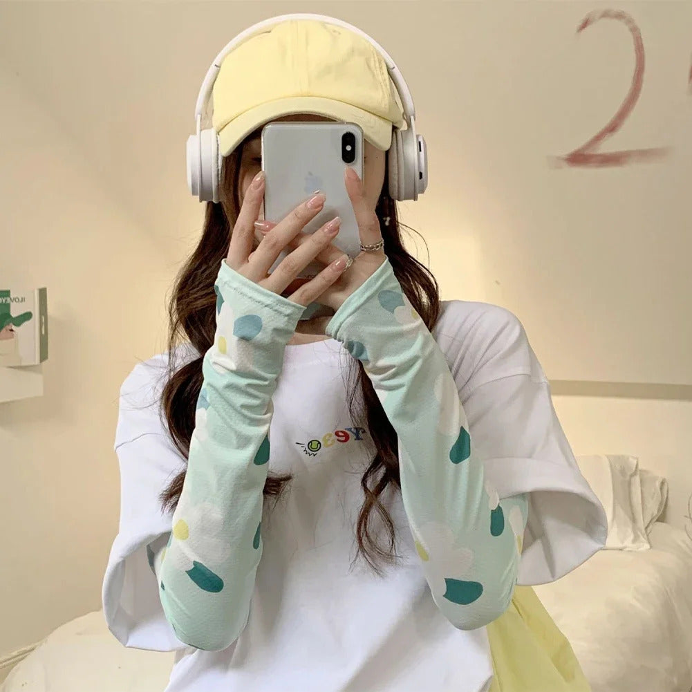 - Loose type flower pattern ice arm sleeves for Summer.