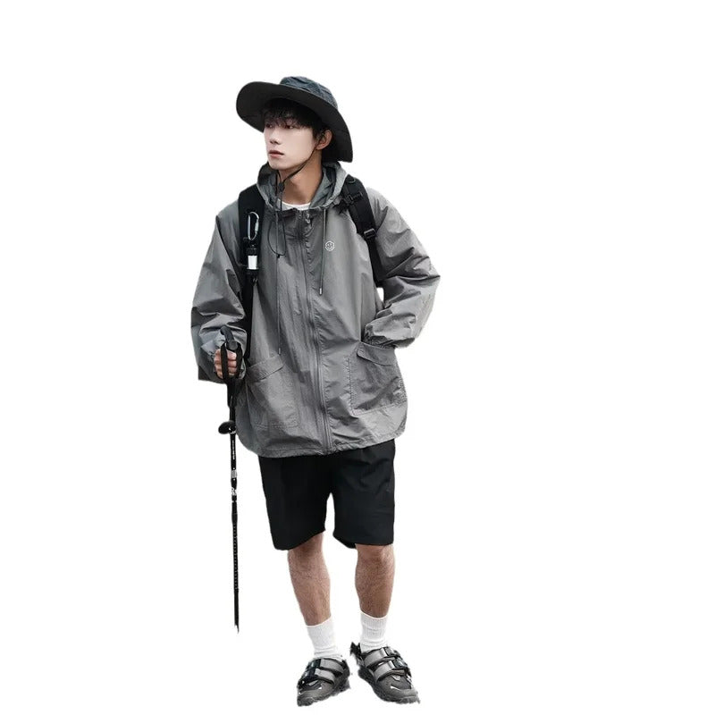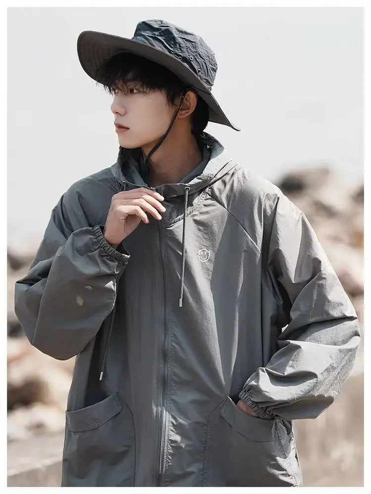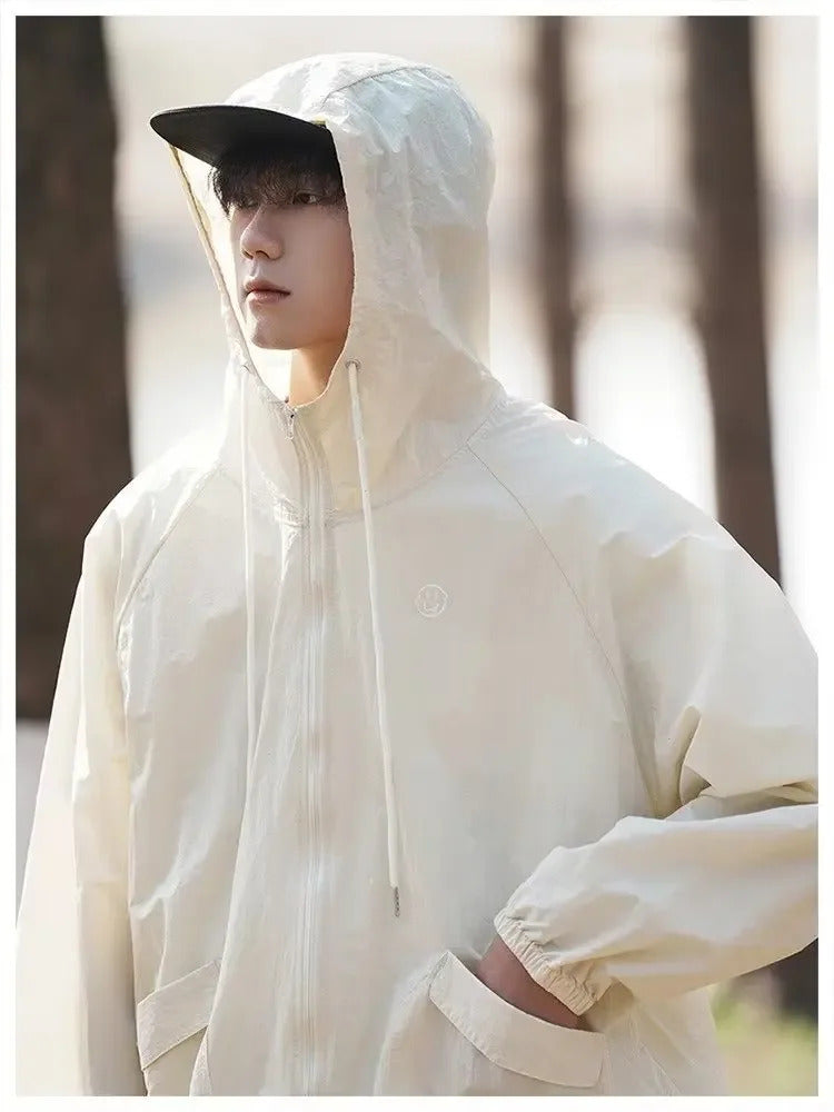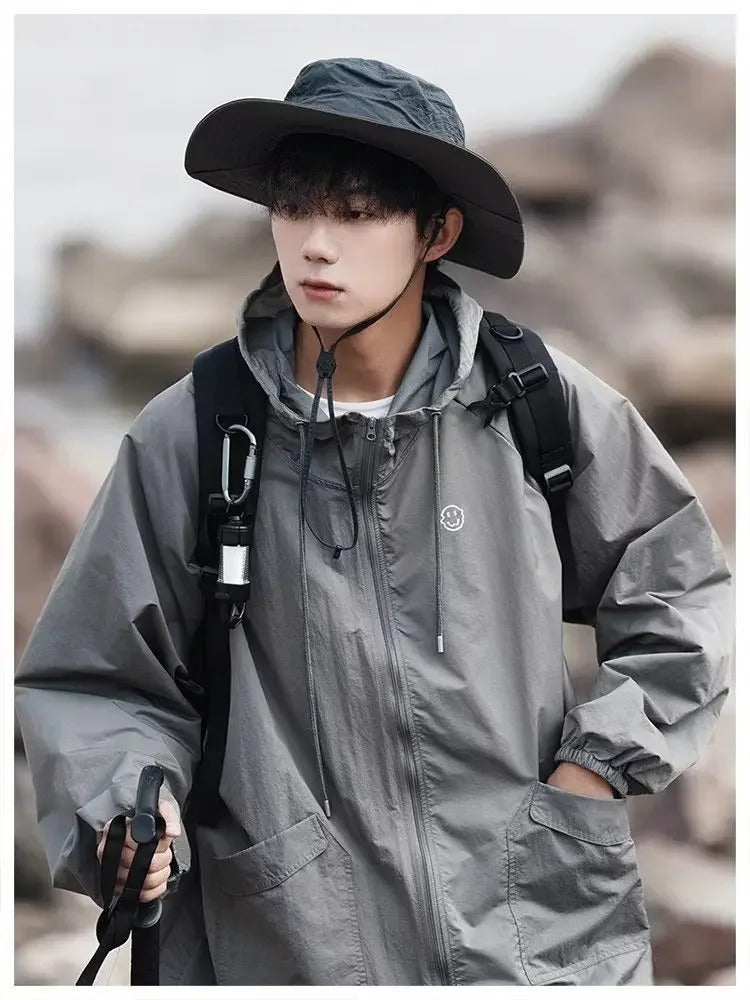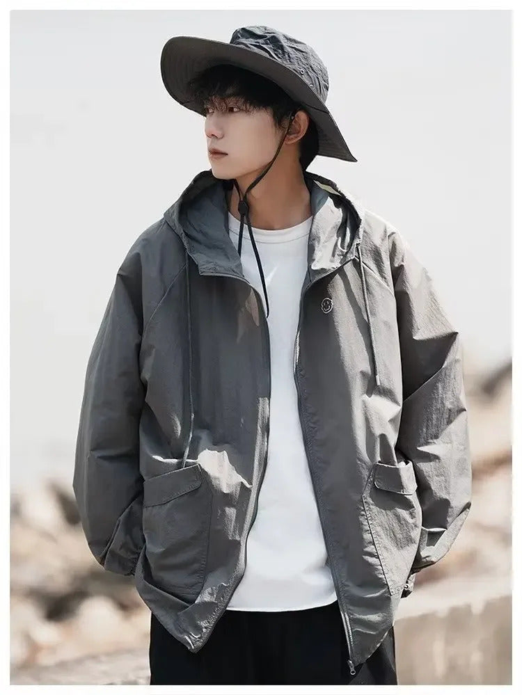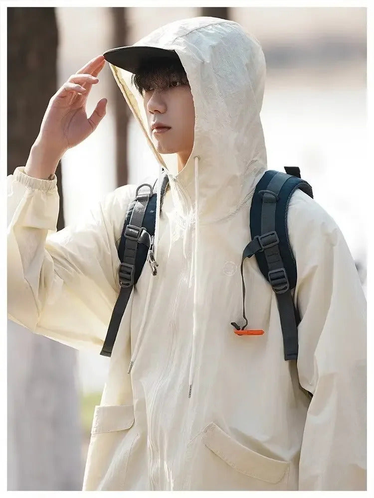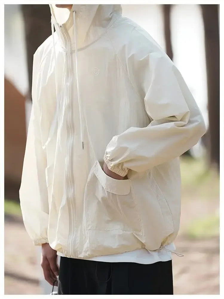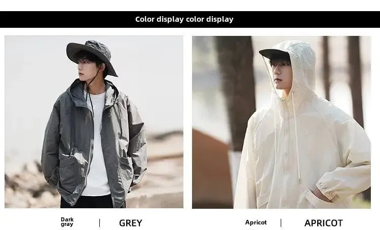 防晒衣男2024 Men's Summer Thin Hooded Jacket American Style Outdoor Casual Sun Protection Clothing Loose Fit Business Blazer