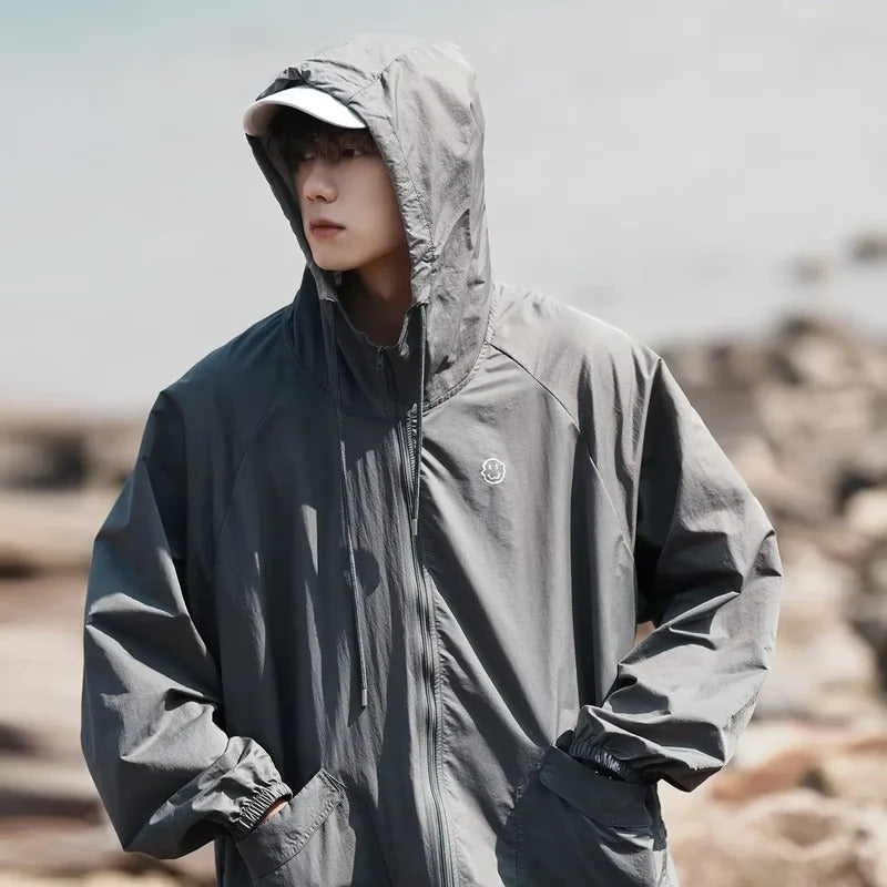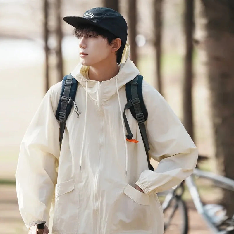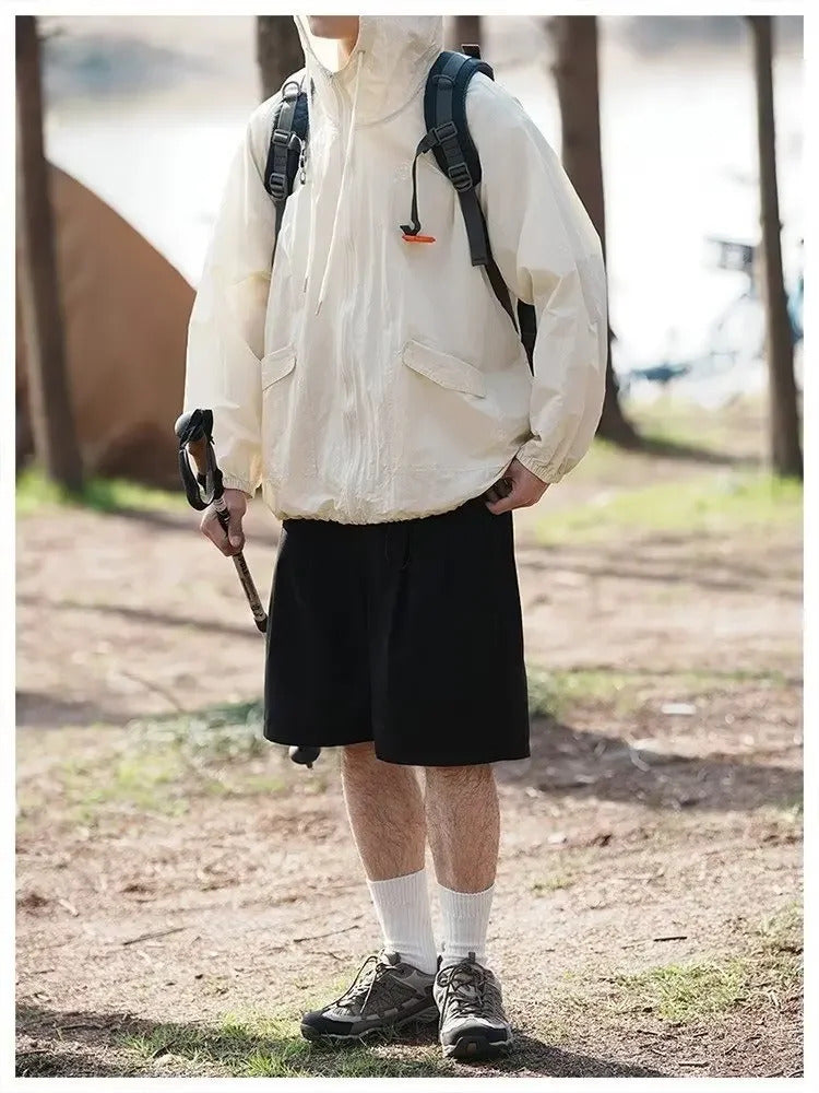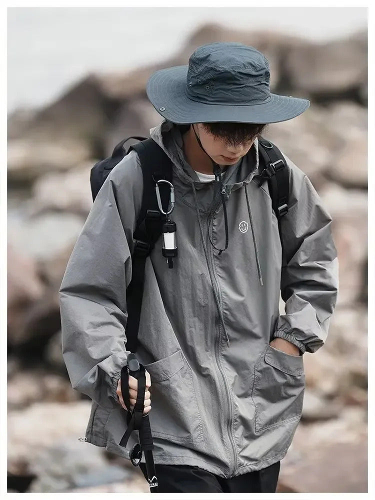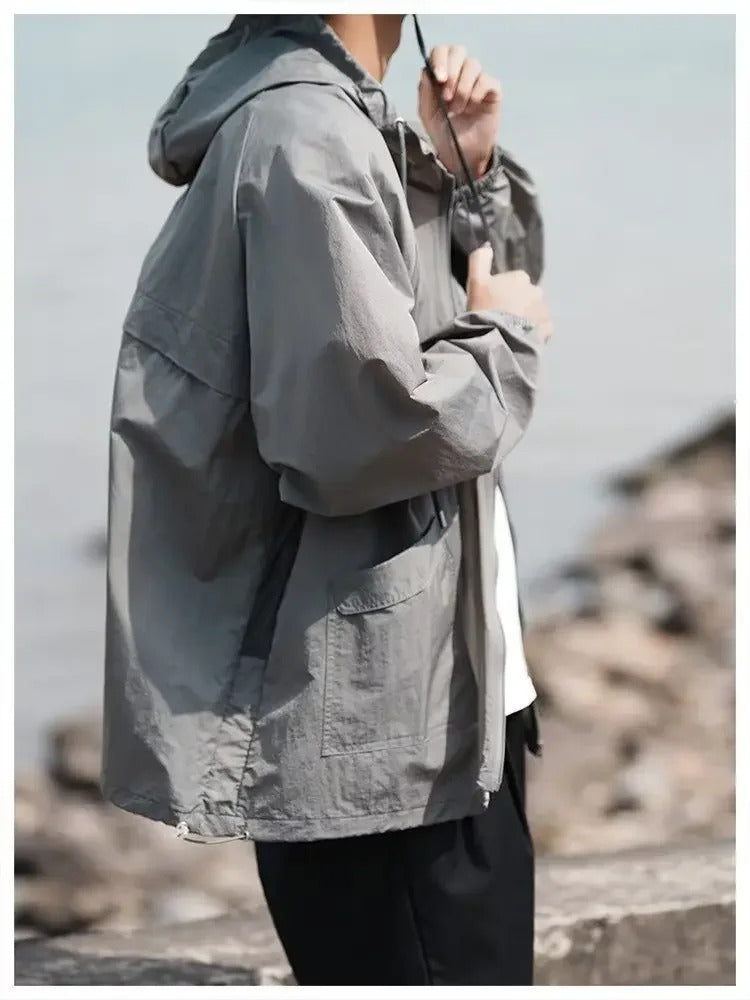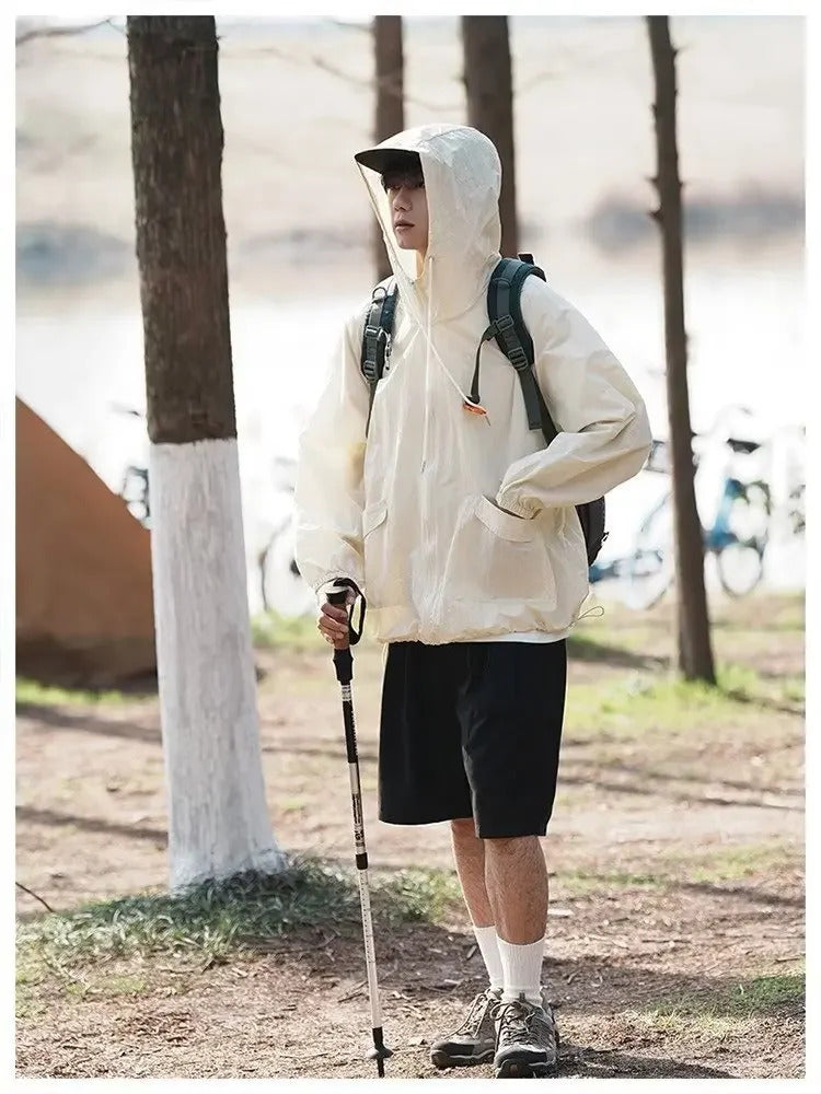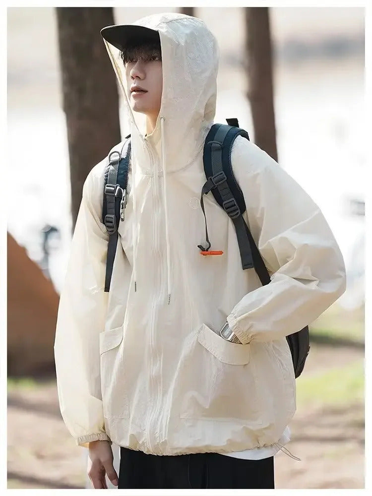 防晒衣男2024 Men's Summer Thin Hooded Jacket American Style Outdoor Casual Sun Protection Clothing Loose Fit Business Blazer