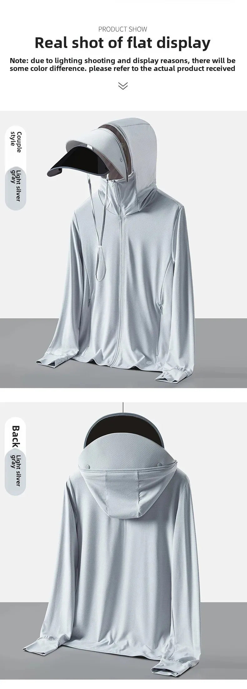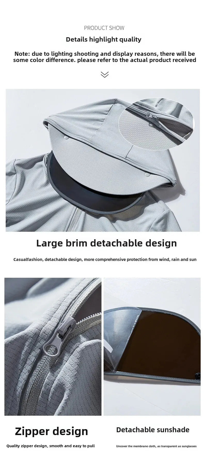 防晒衣男2024 New Couple Sunscreen Clothes Hooded Removable Strap Men's Skin Clothes Summer Thin Couple Sunscreen Clothes Casual Loose Fi