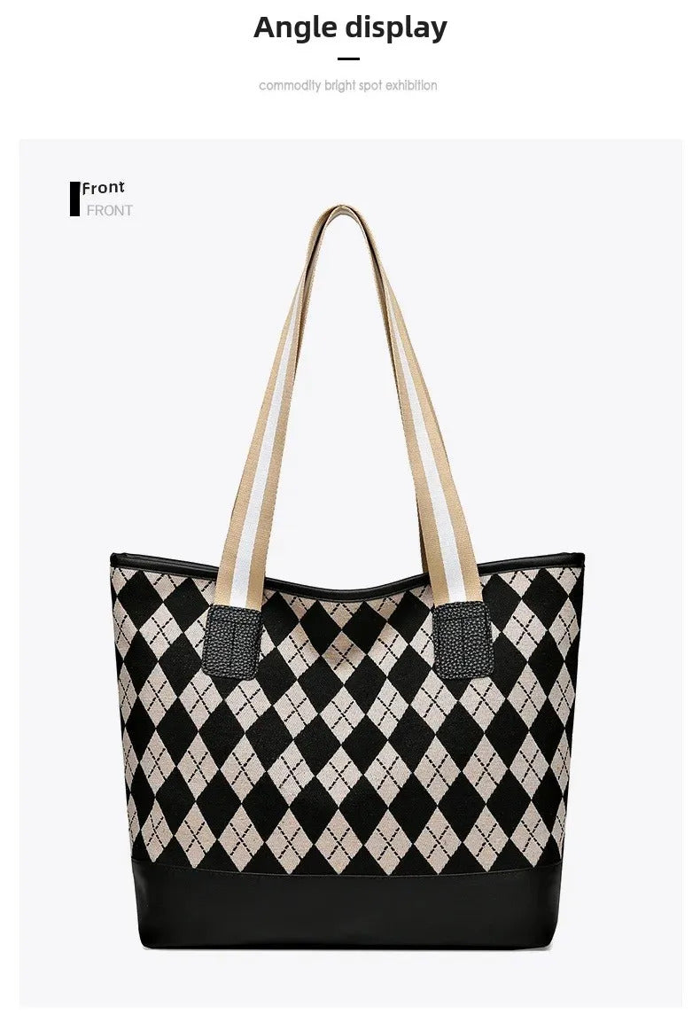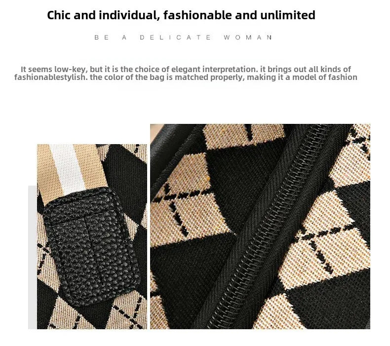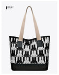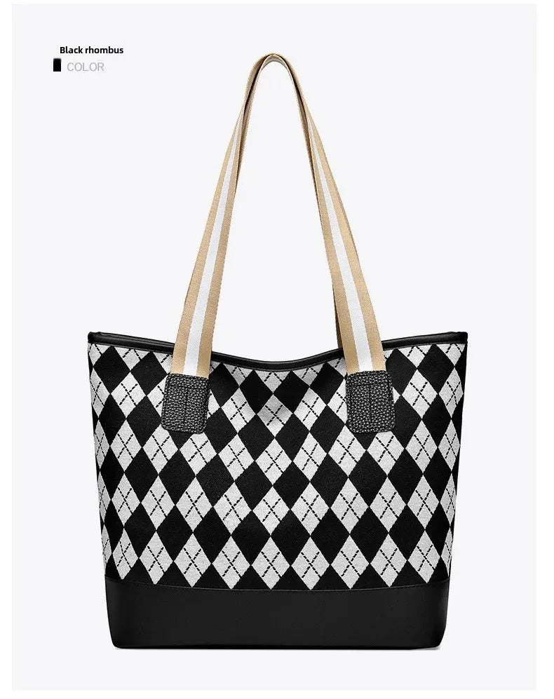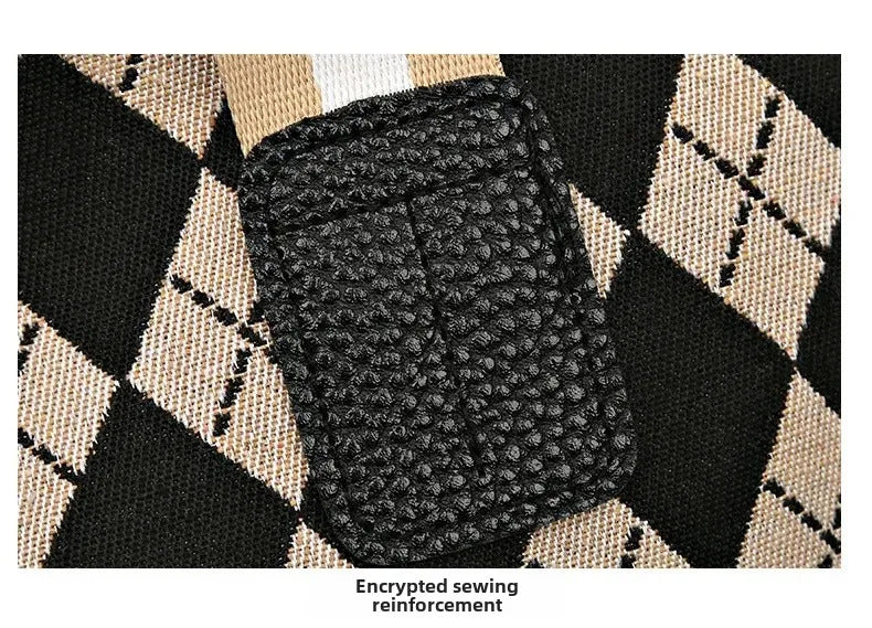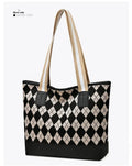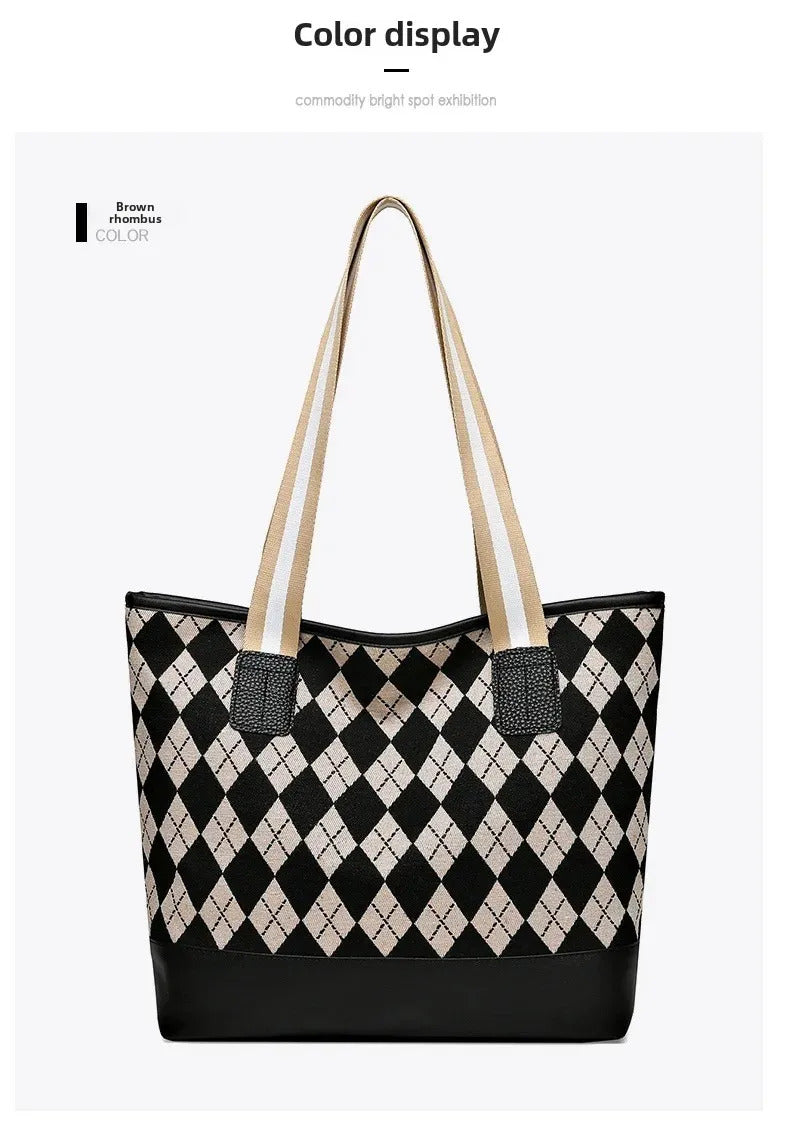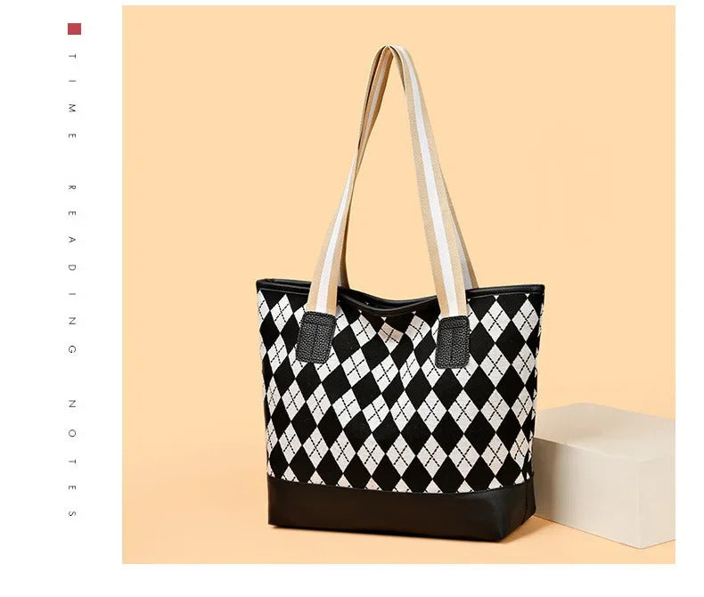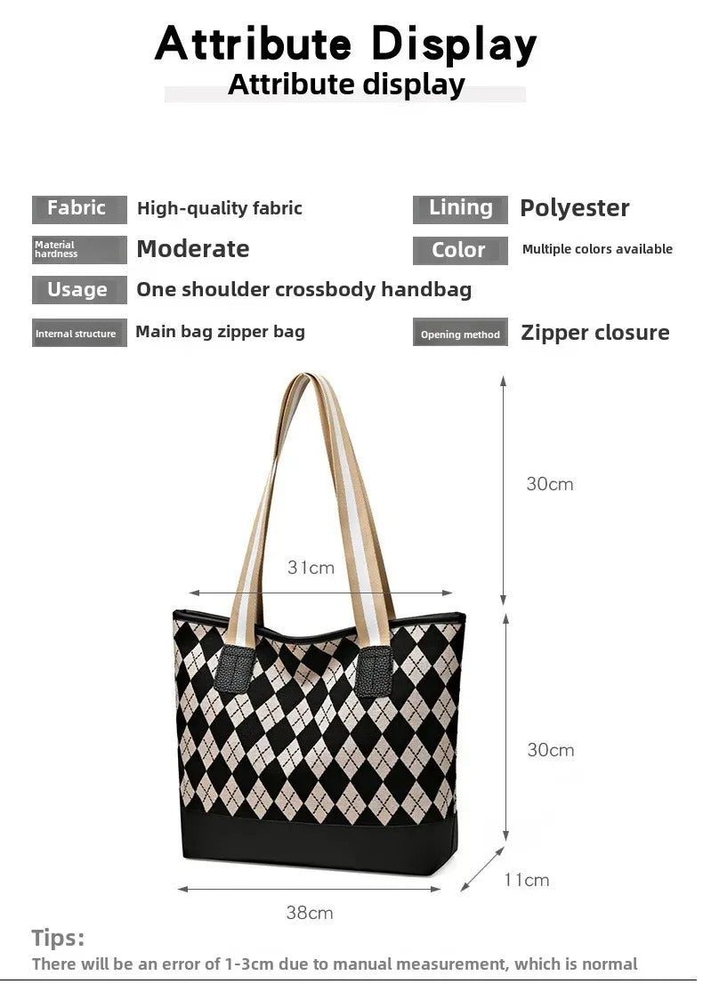 包包2024 New Fashionable Versatile Canvas Printing Argyle Women's Shoulder Bag Large Capacity Tote Bag Fabric Bag Zipper Closure