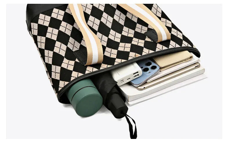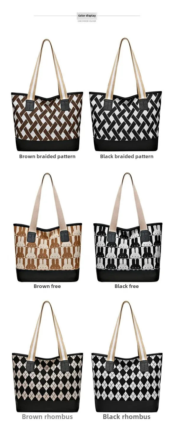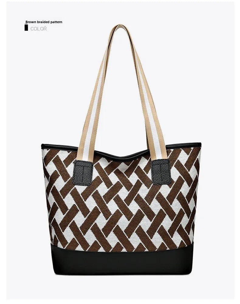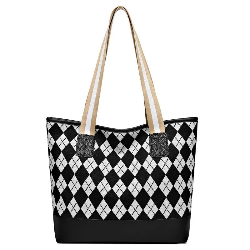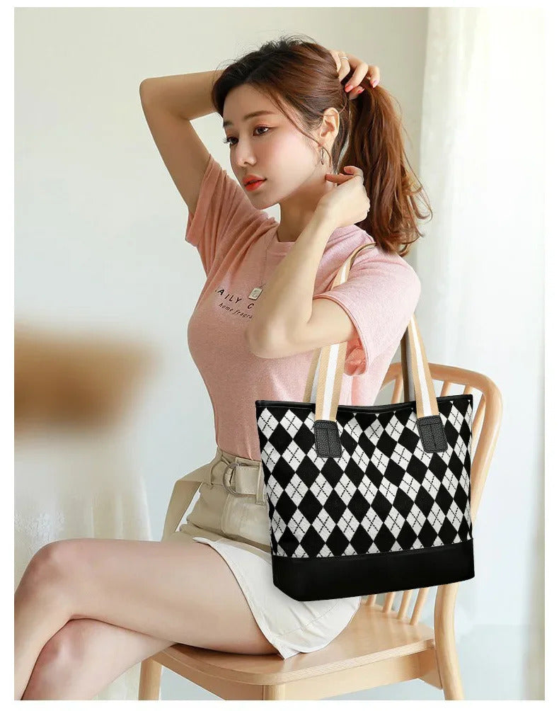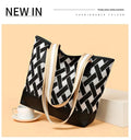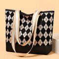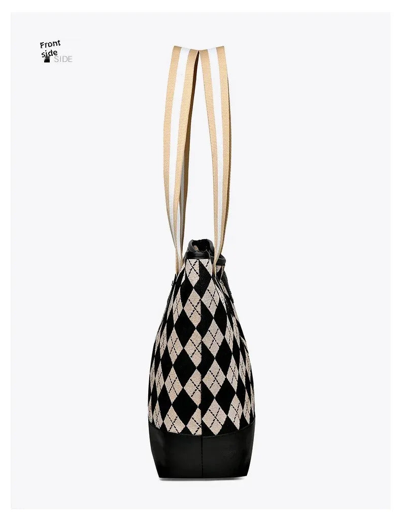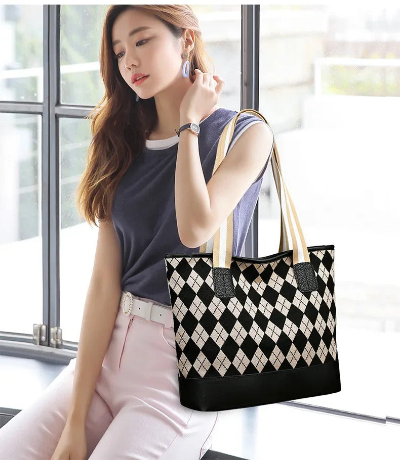 包包2024 New Fashionable Versatile Canvas Printing Argyle Women's Shoulder Bag Large Capacity Tote Bag Fabric Bag Zipper Closure