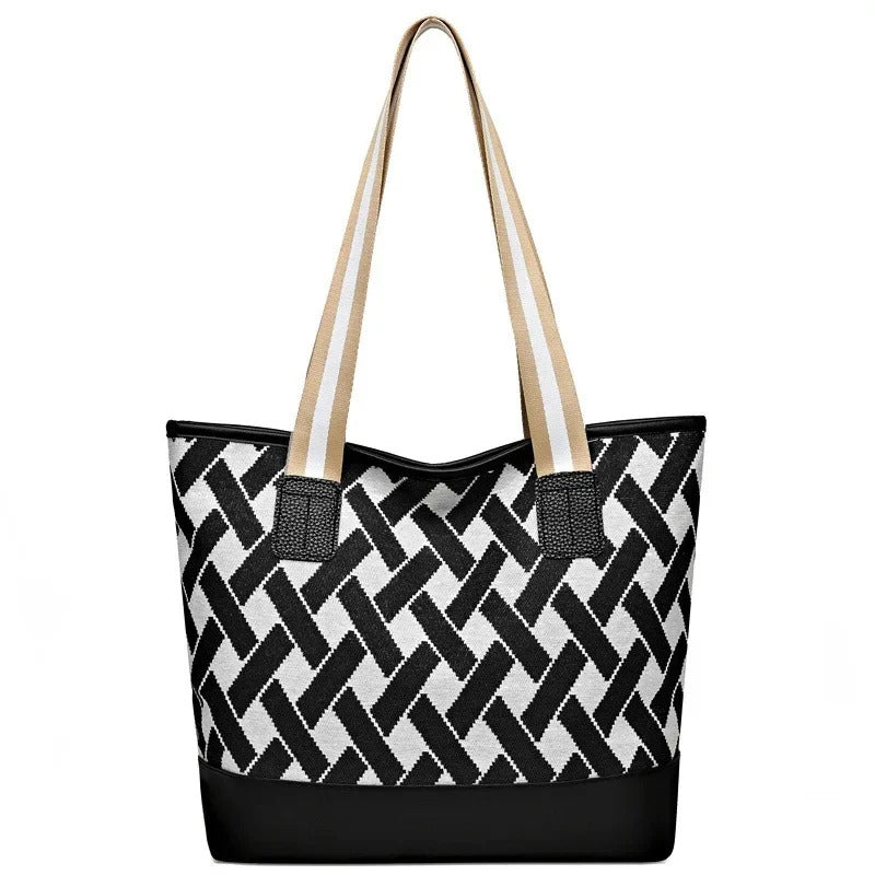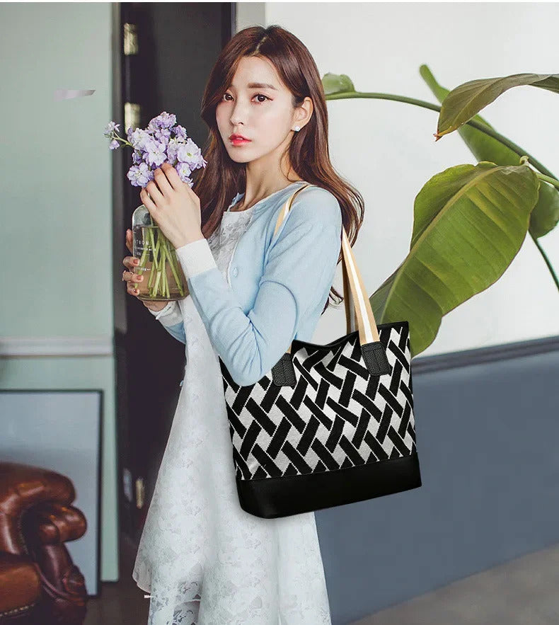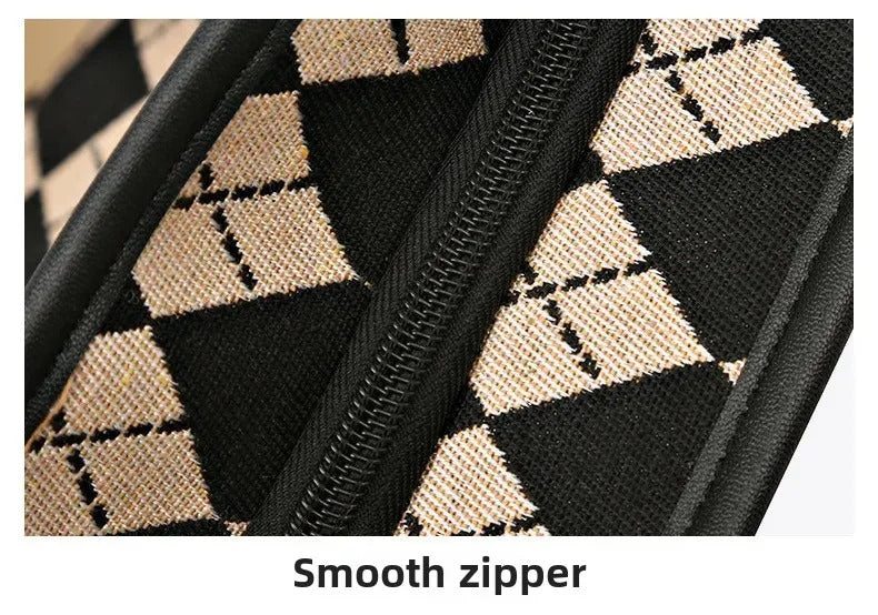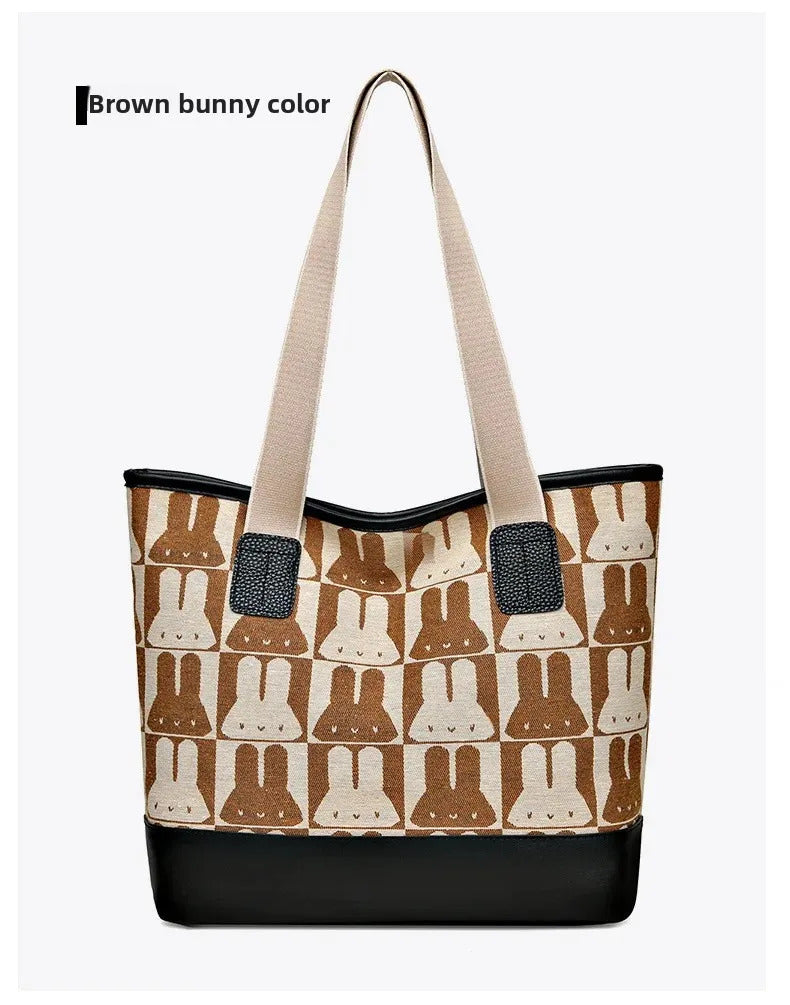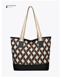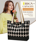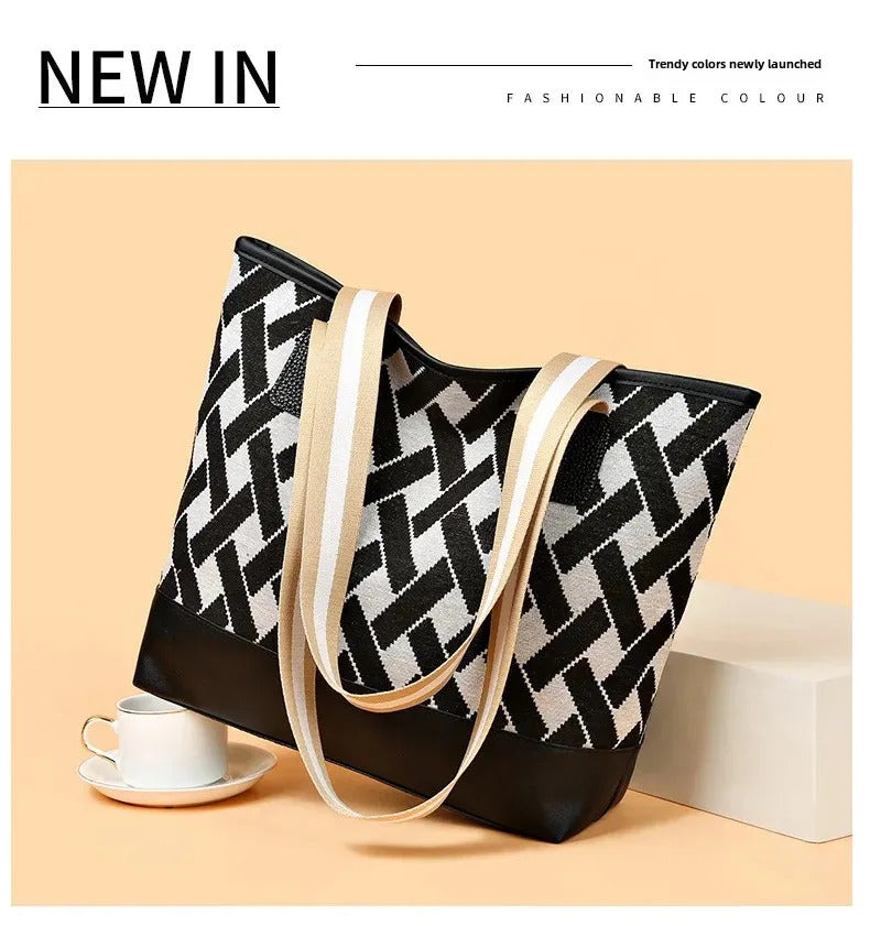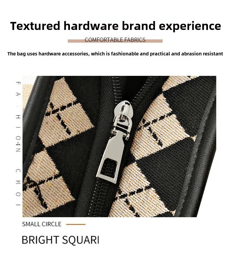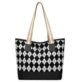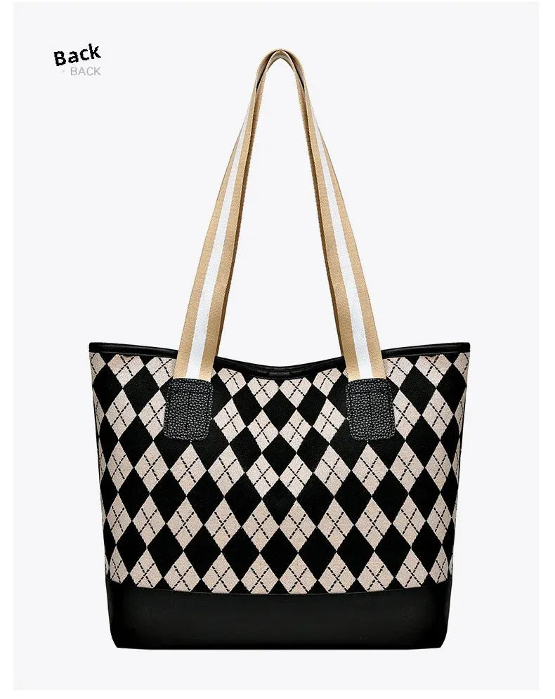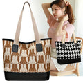 包包2024 New Fashionable Versatile Canvas Printing Argyle Women's Shoulder Bag Large Capacity Tote Bag Fabric Bag Zipper Closure