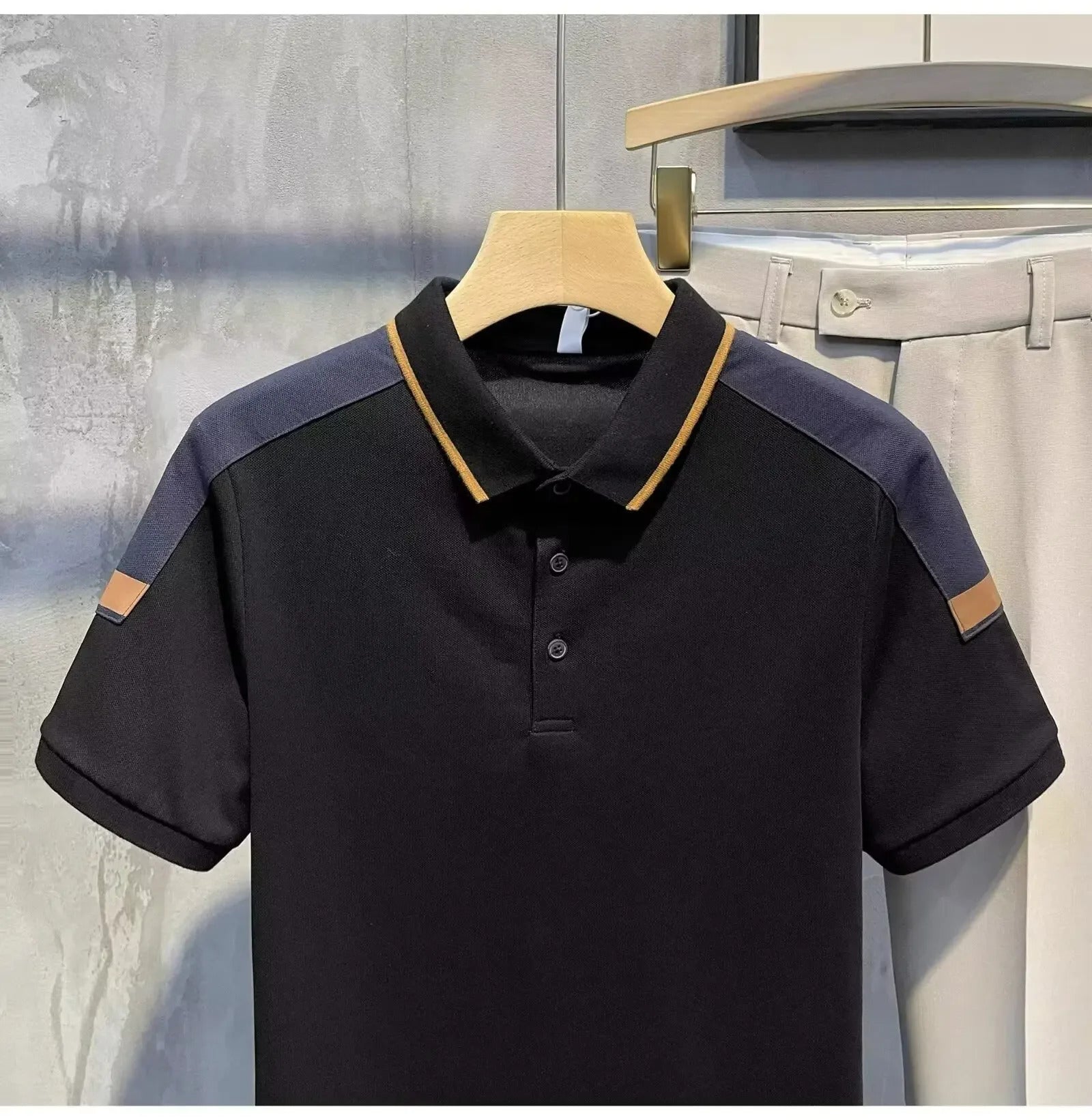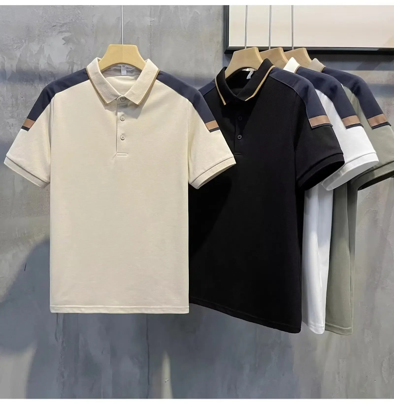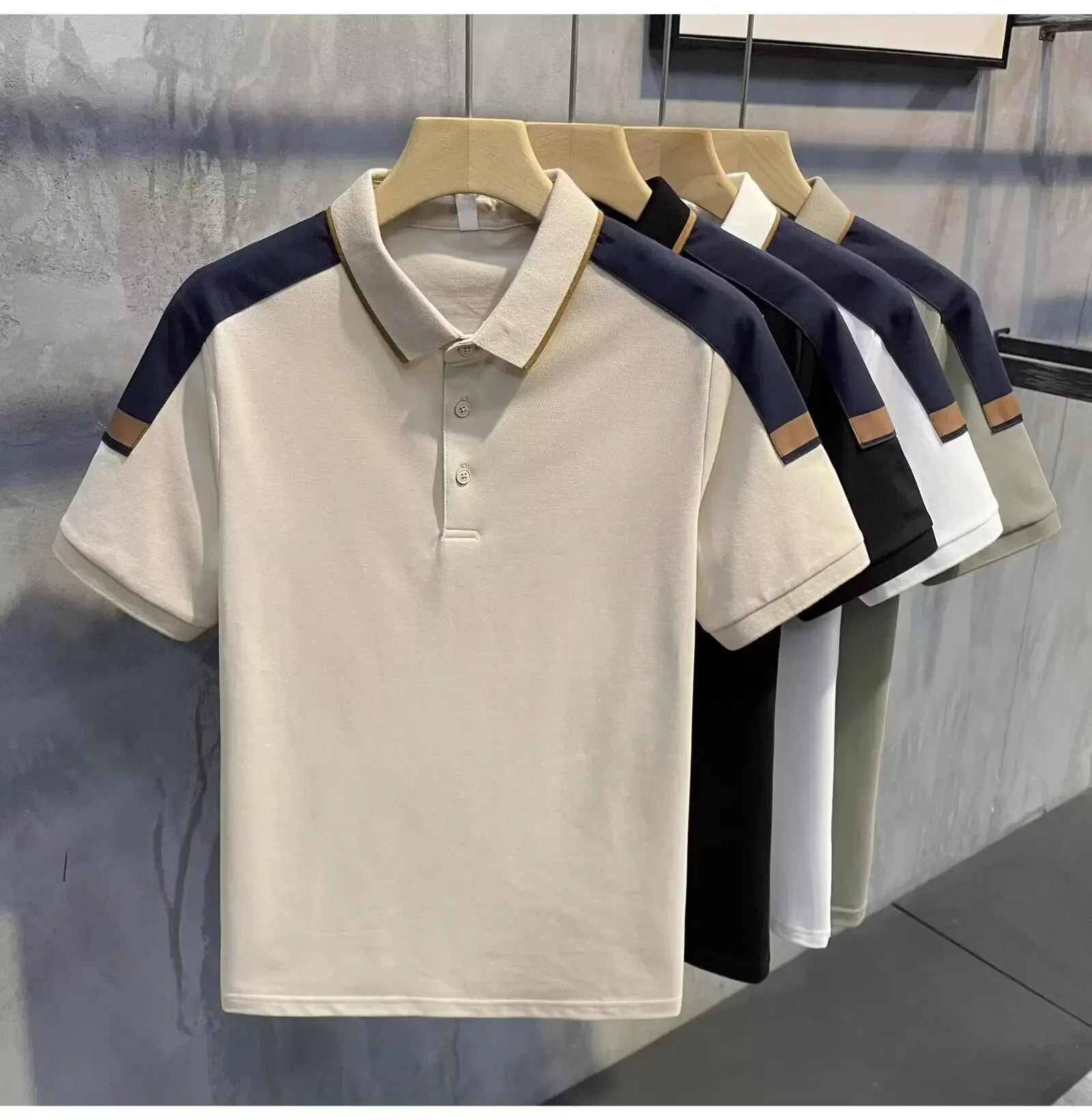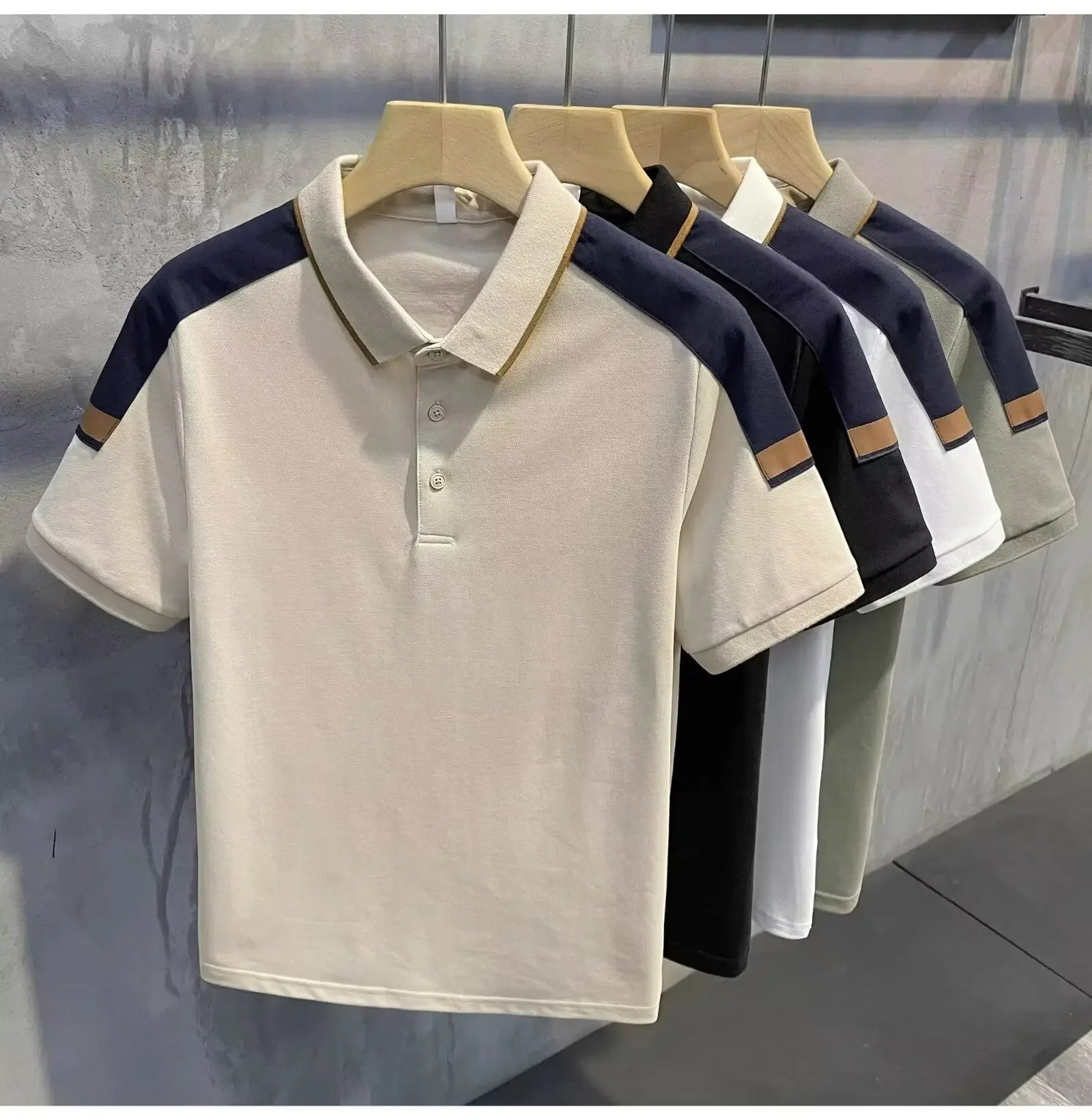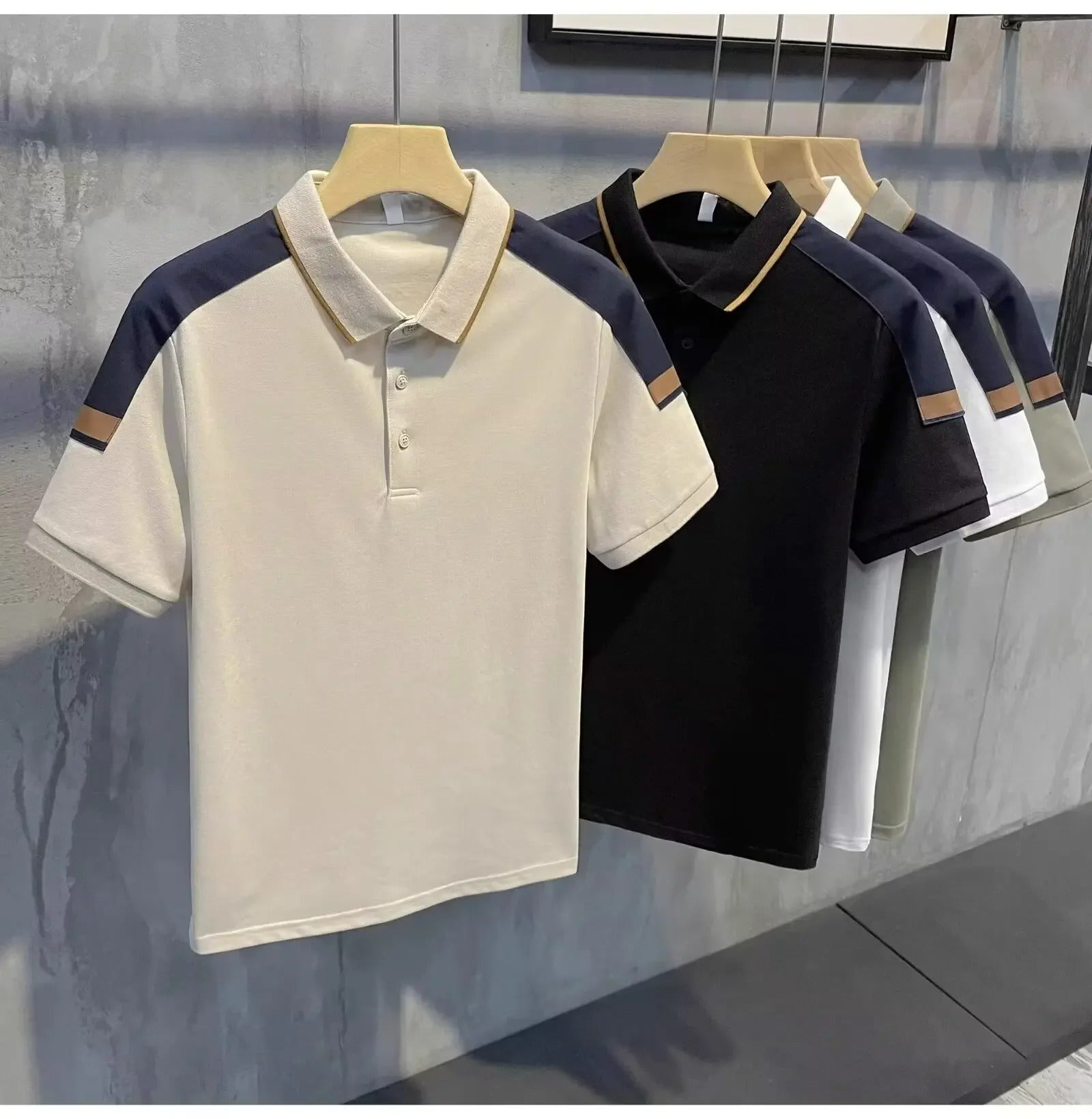 POLO男2024 New Men's Polo Shirt Short Sleeves Color Blocking Korean Style Unique Trendy Casual Summer Top For Men