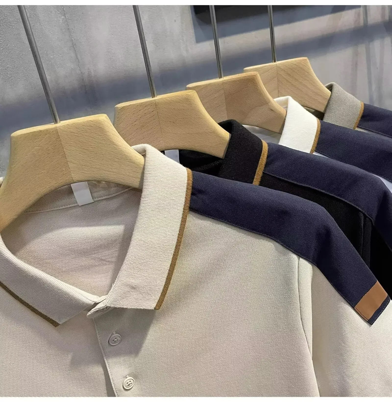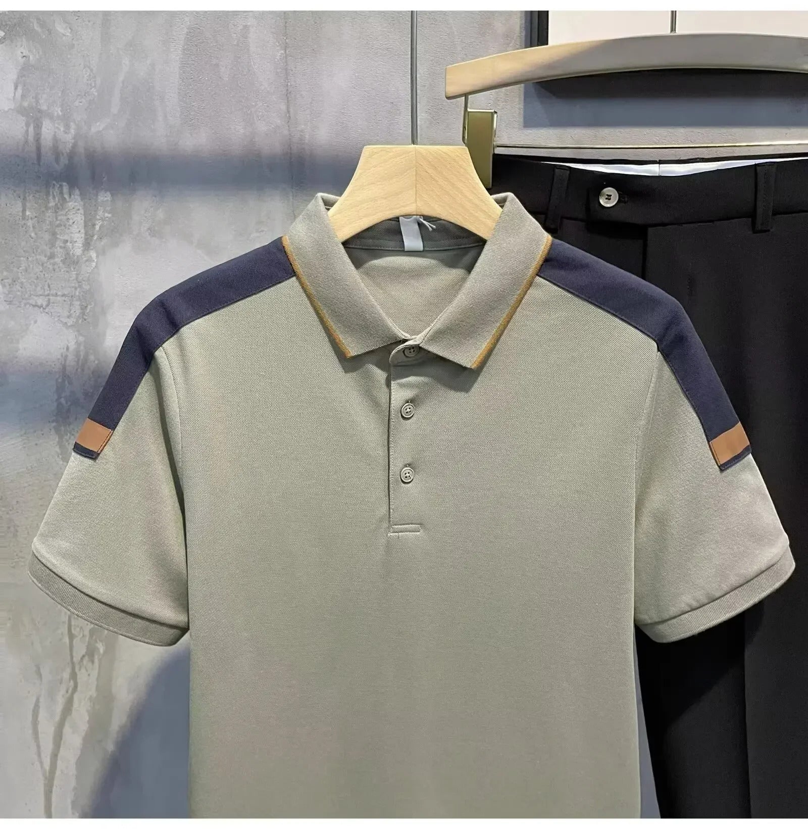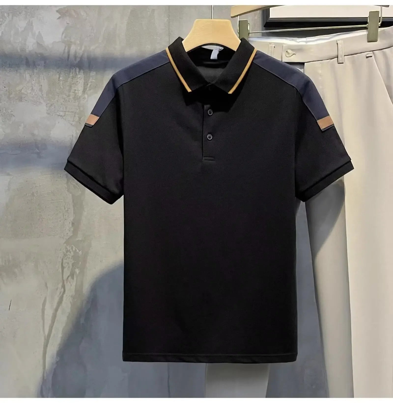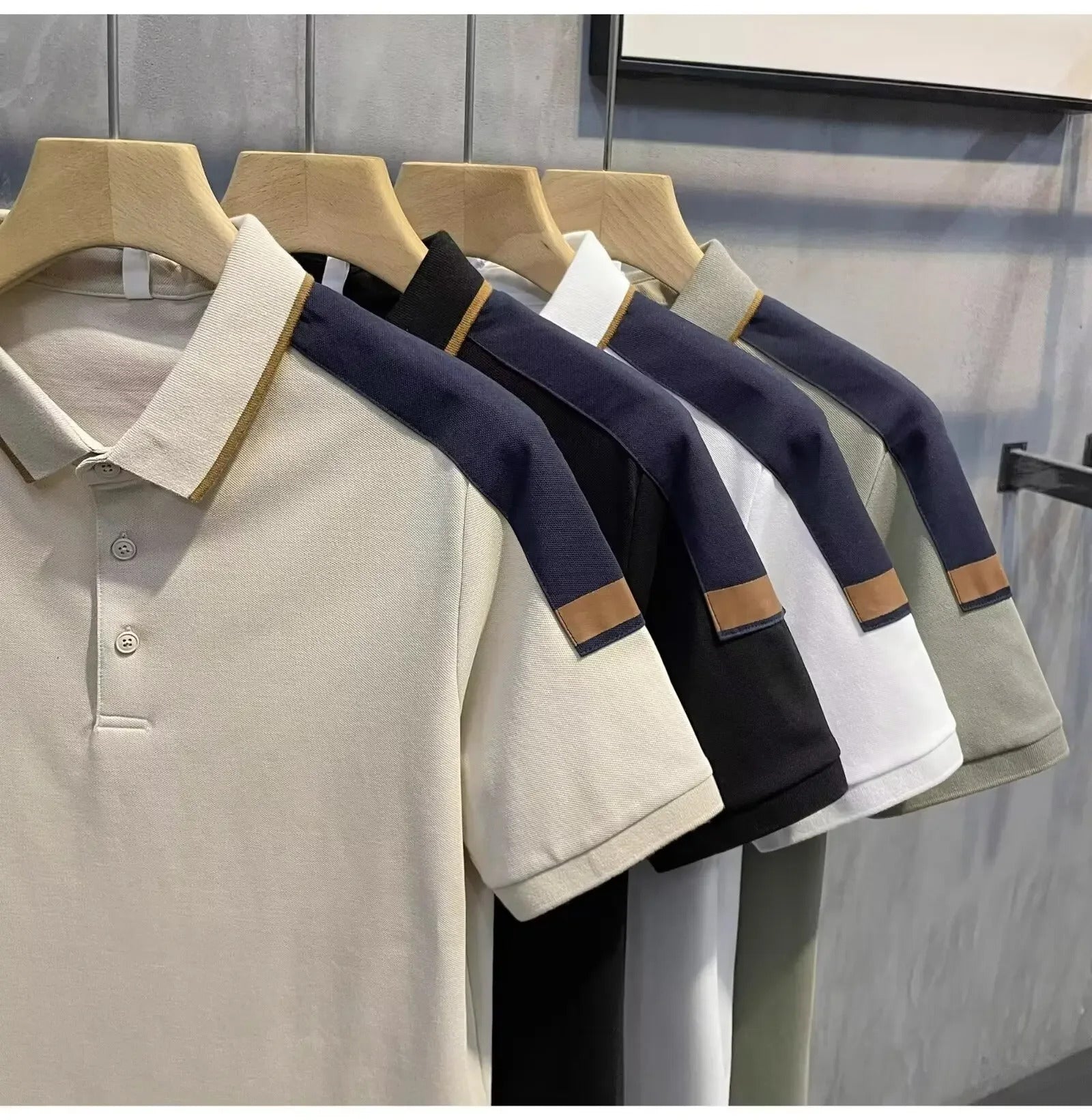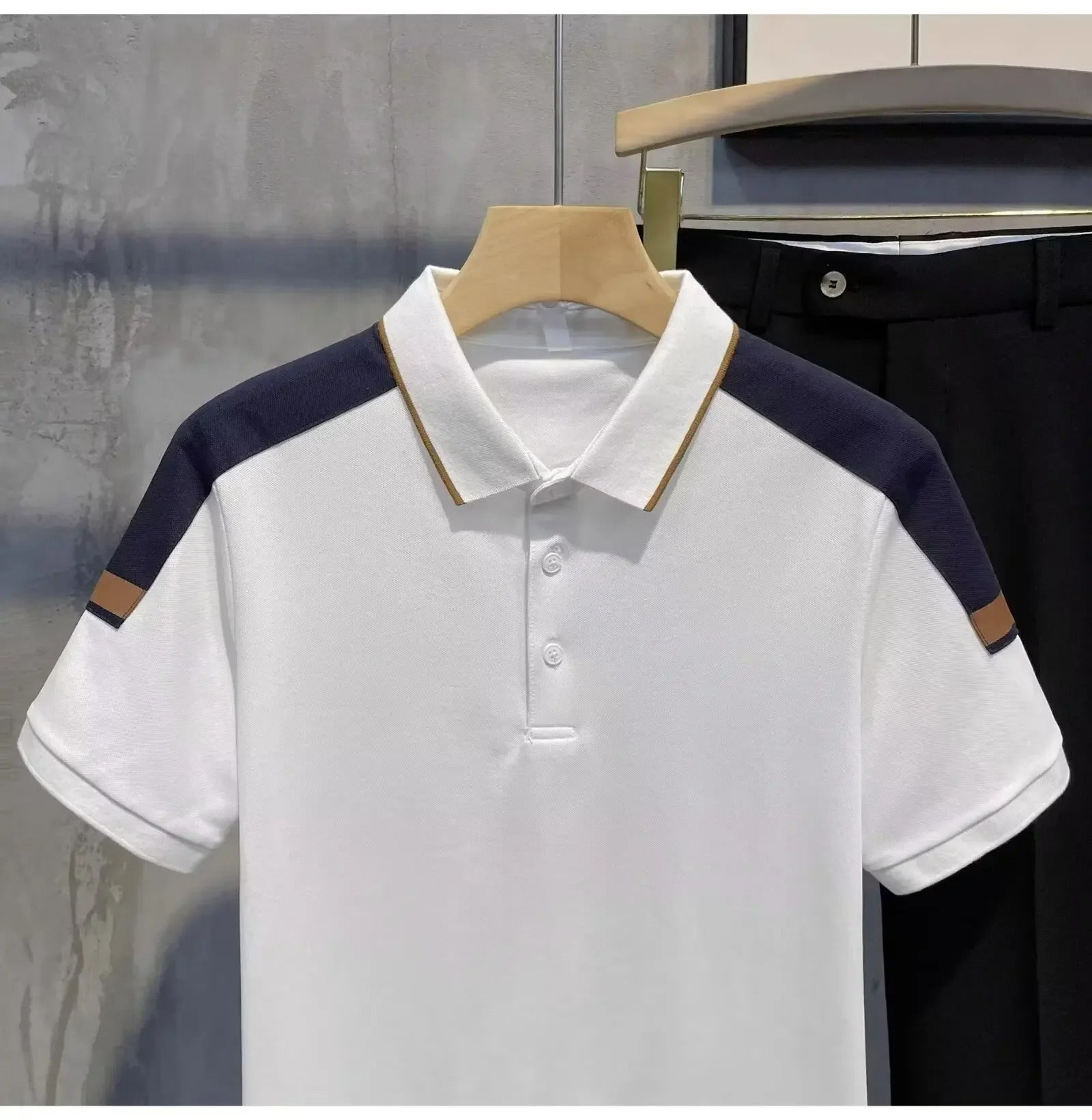 POLO男2024 New Men's Polo Shirt Short Sleeves Color Blocking Korean Style Unique Trendy Casual Summer Top For Men