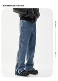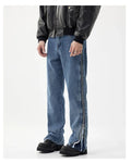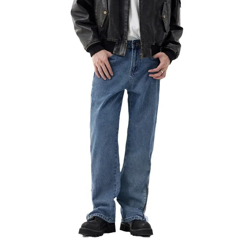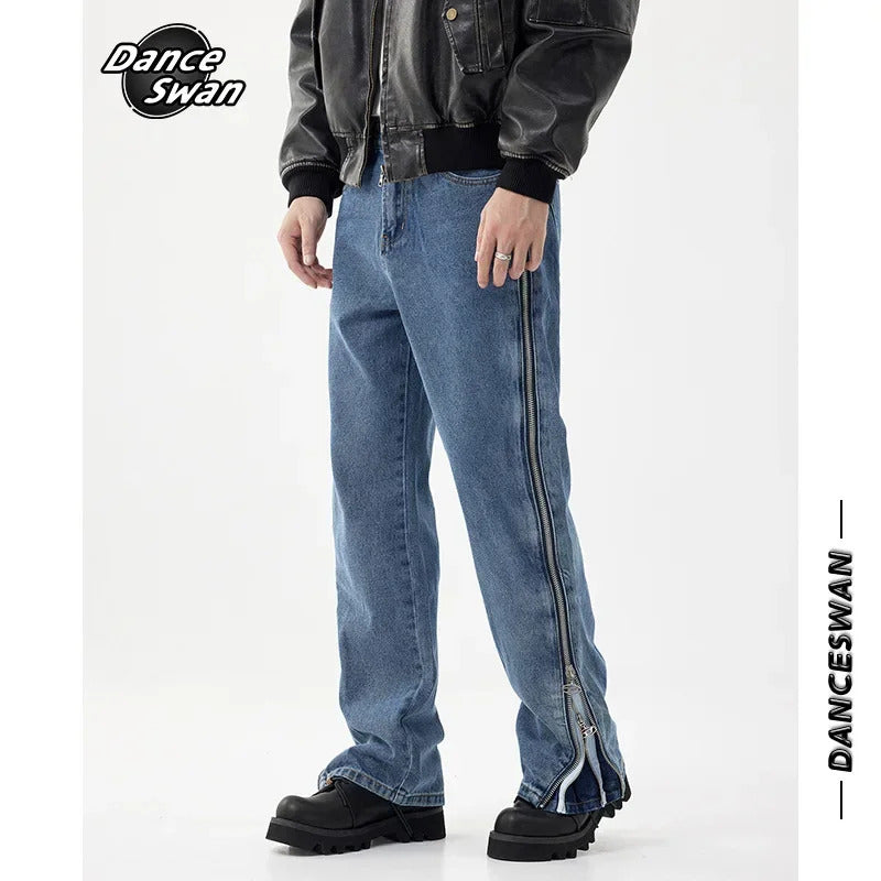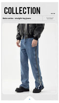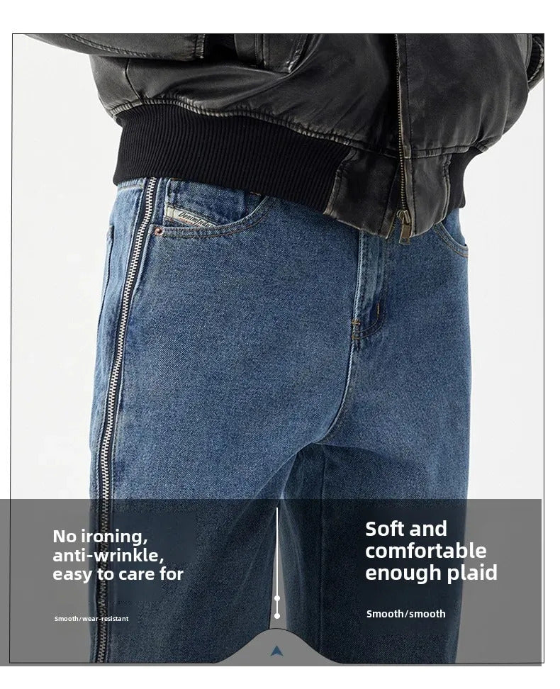 牛仔裤男2024 New Men's Straight-Leg Denim Jeans Loose-Fit Blue Washings High Street Style Zip-Up Long Pants For Autumn/Winter