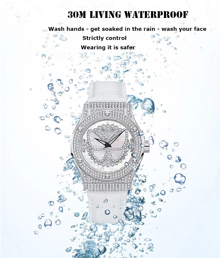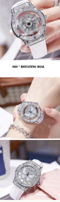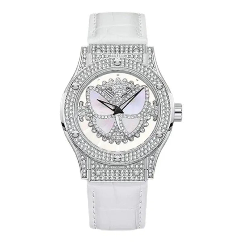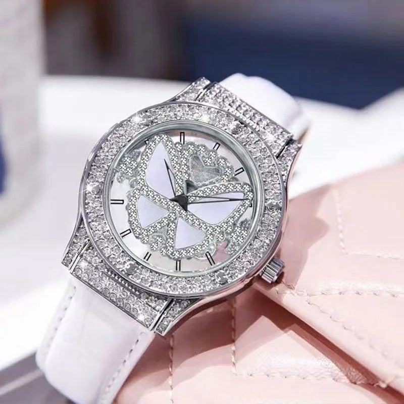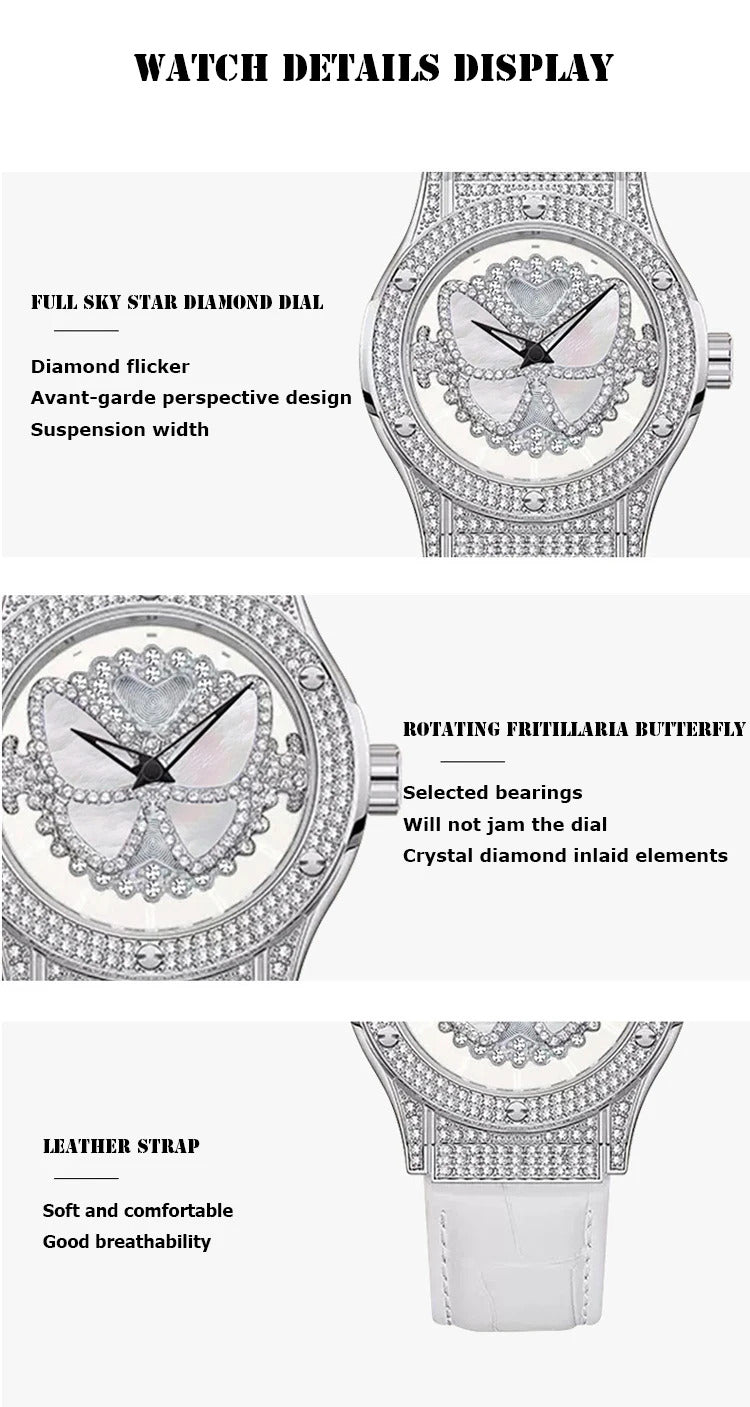 手表女2024 New Watch Women Full Diamond Light Luxury Hollow Full Sky Star butterfly Leather Waterproof Female Fashion Quartz Watches