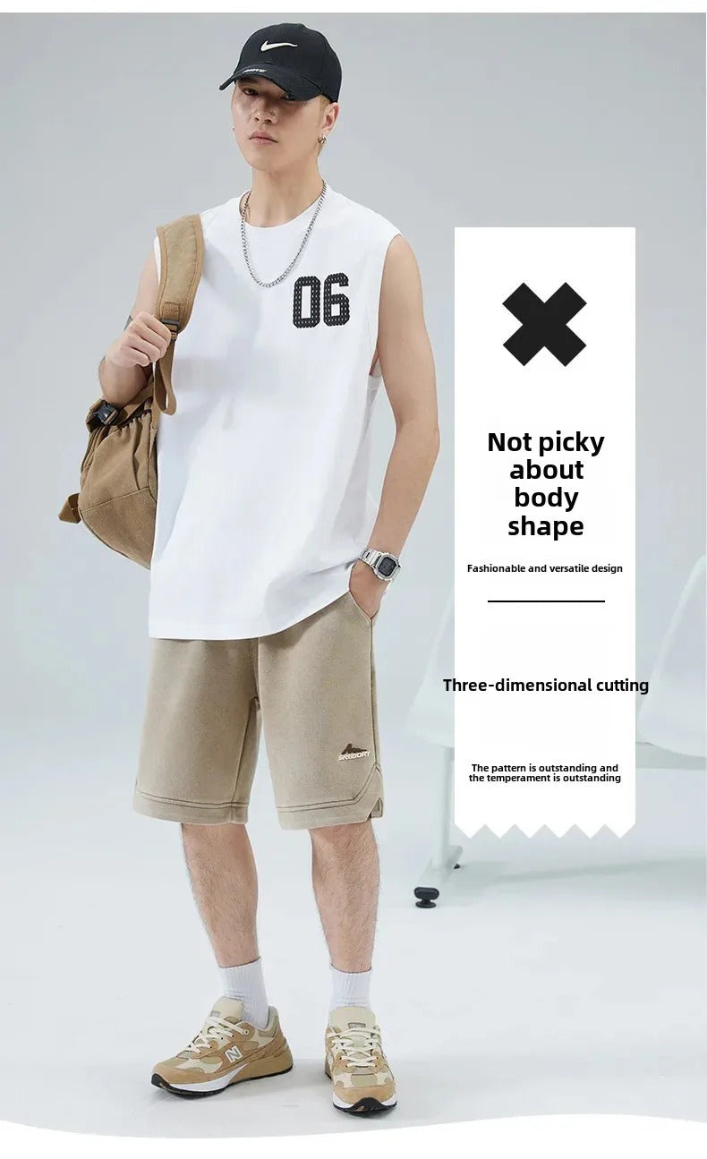 男士背心2024 Spring Summer Heavy Duty Sport Shoulder Vest T-Shirt Men's Plus Size Sleeveless Short Sleeves Versatile Simple T-Shirt