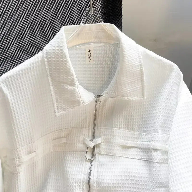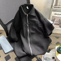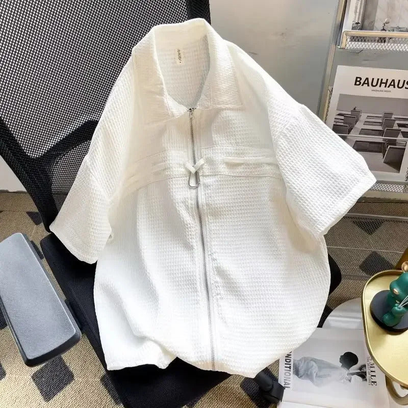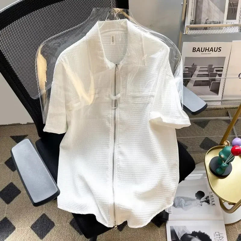 衬衫男2024 Summer Korean Style Men's Zippered Short Sleeve Shirt Youth Metal Rebellious Short Sleeve Tops Casual Sensibility Design