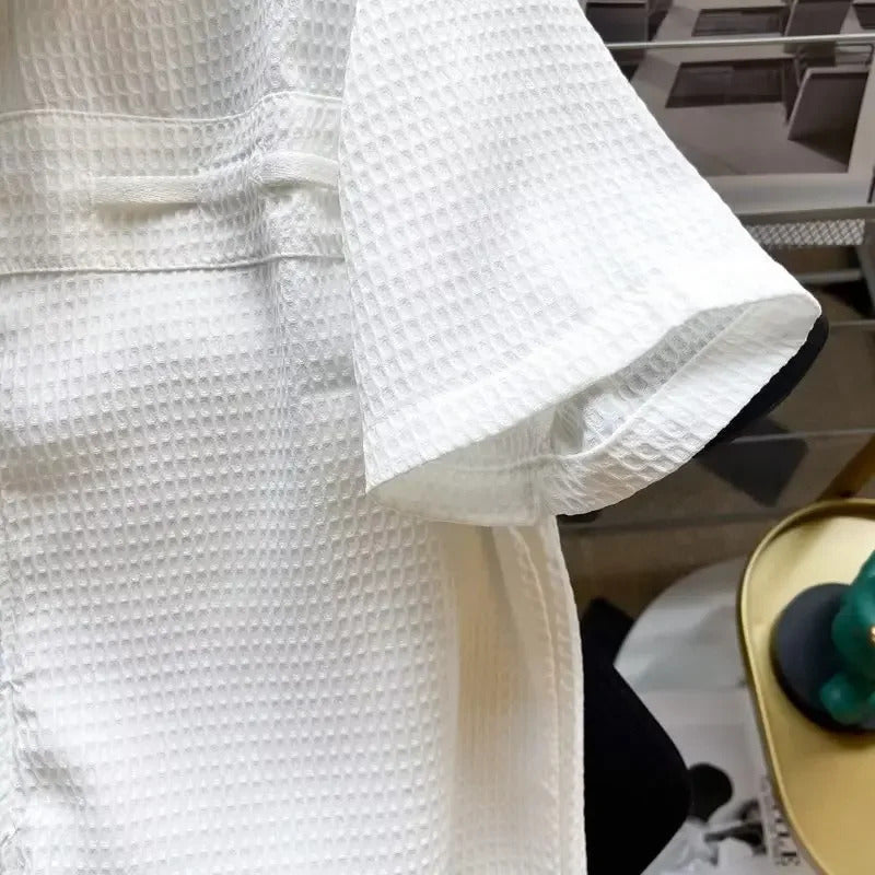 • Waffled Design : The shirt features a unique waffled design, offering a trendy and modern look for the summer season.