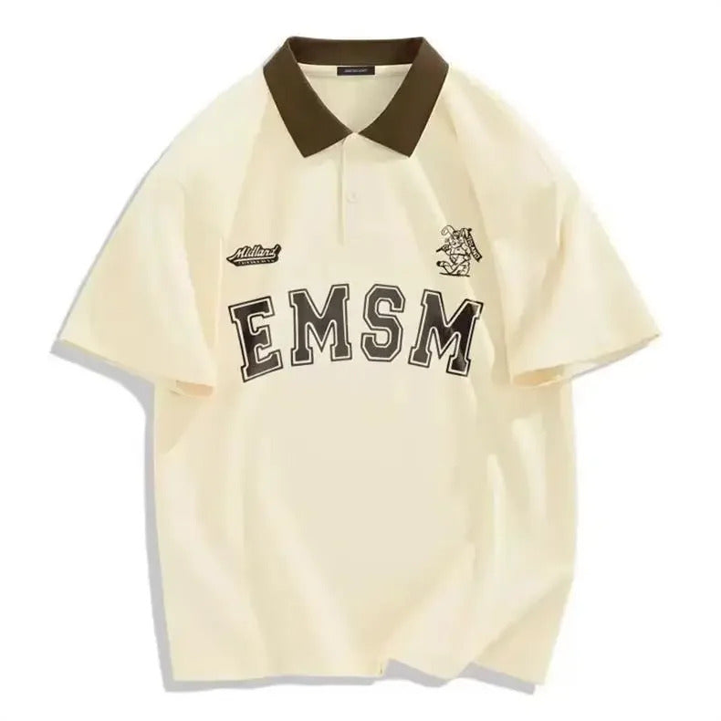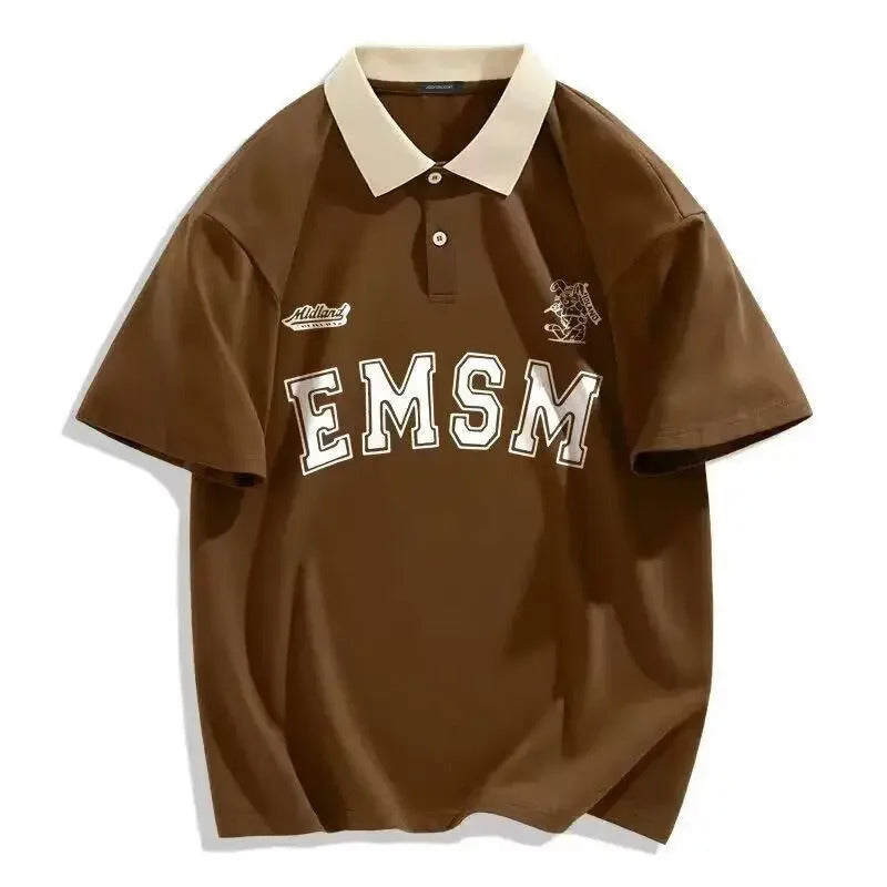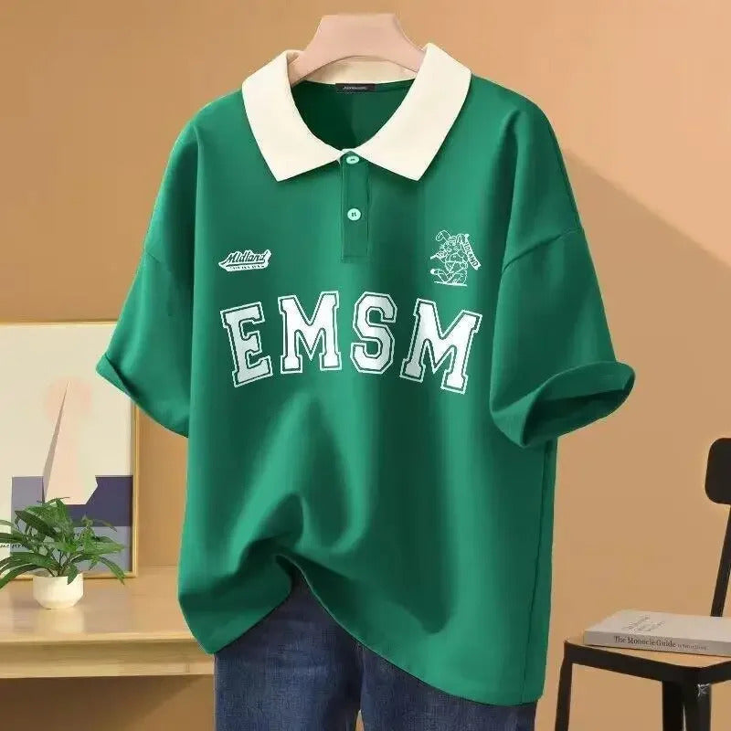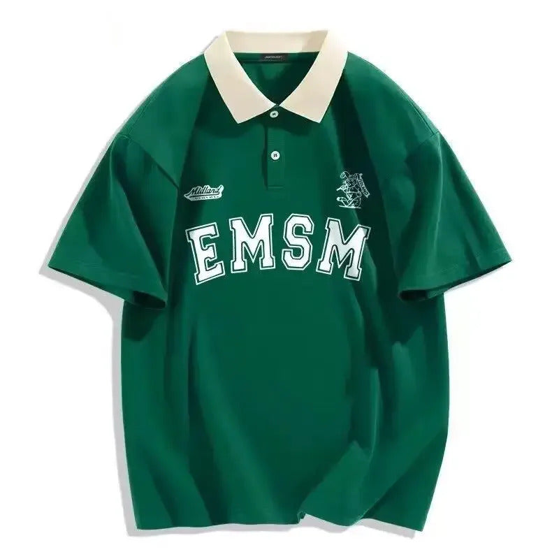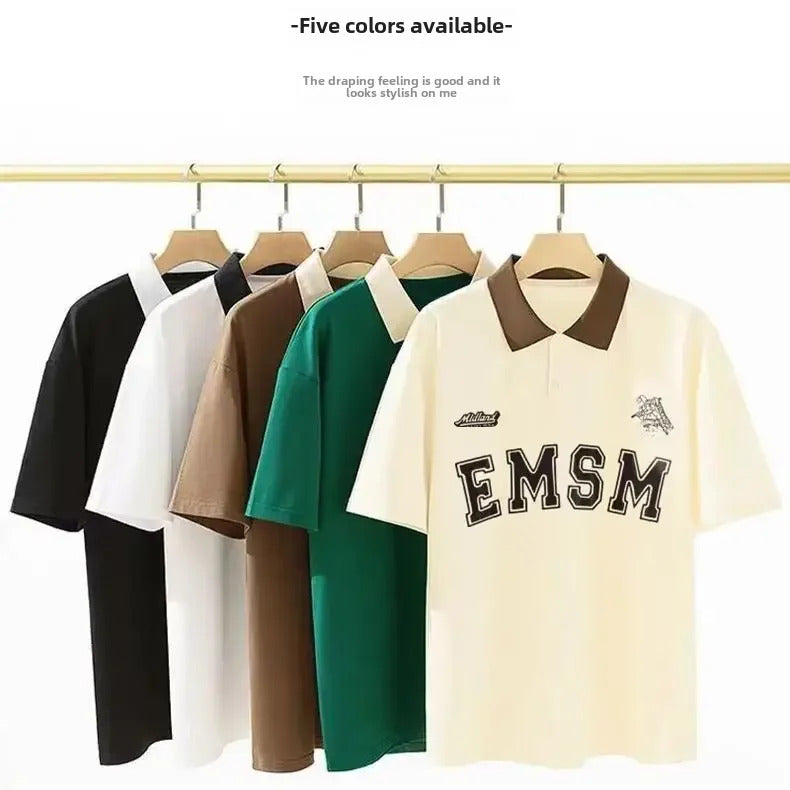 POLO男2024 Summer Men's American Style Polo Shirt Youth Popular T-shirt Half Sleeve Loose Fit Slimming Vintage Printing Top