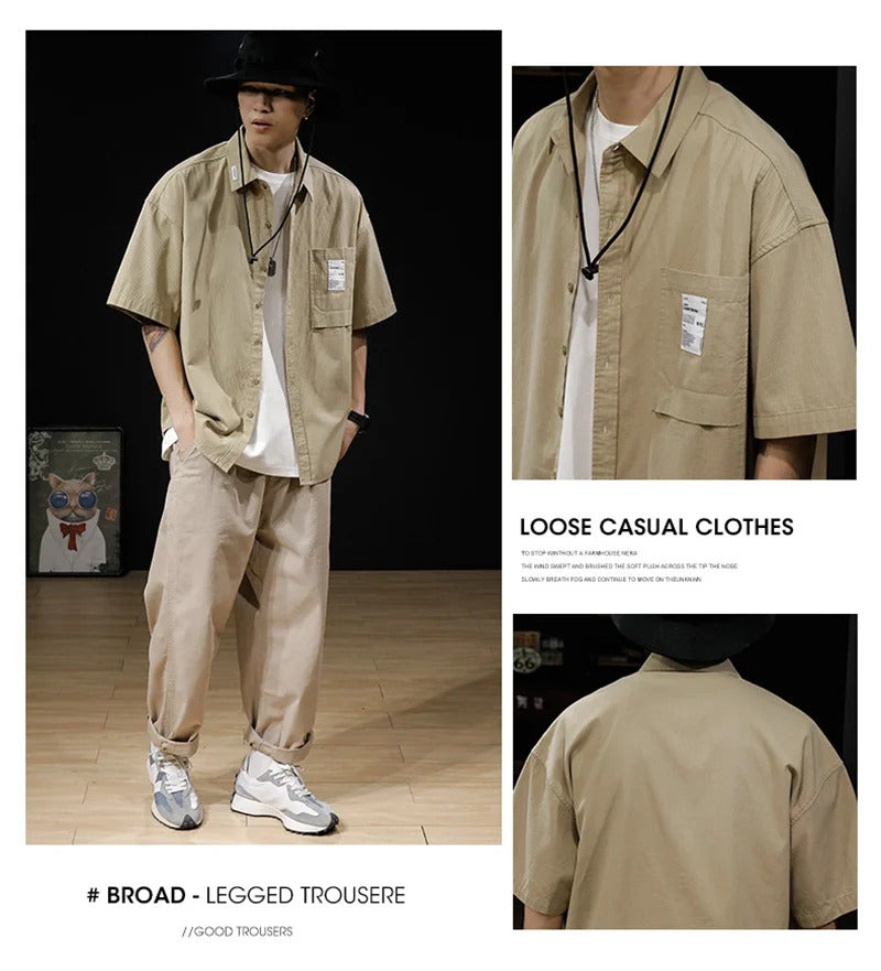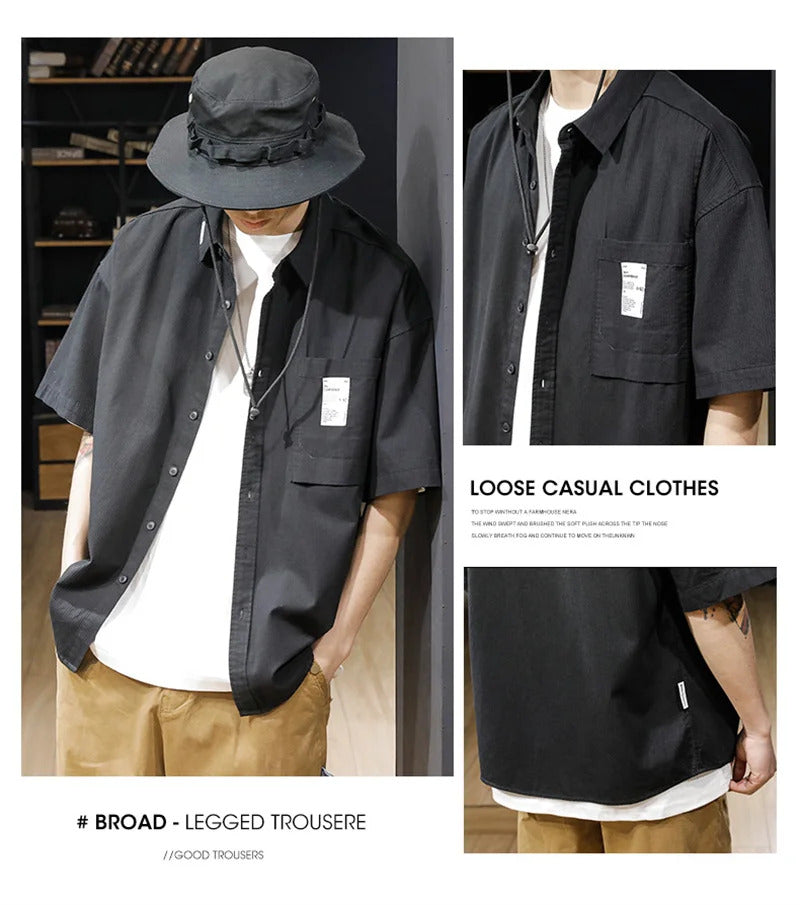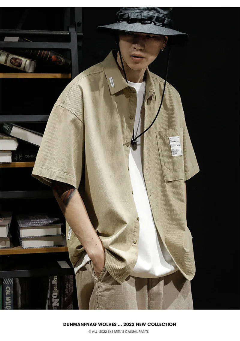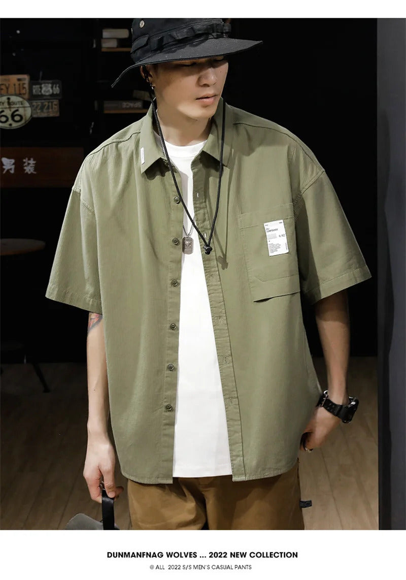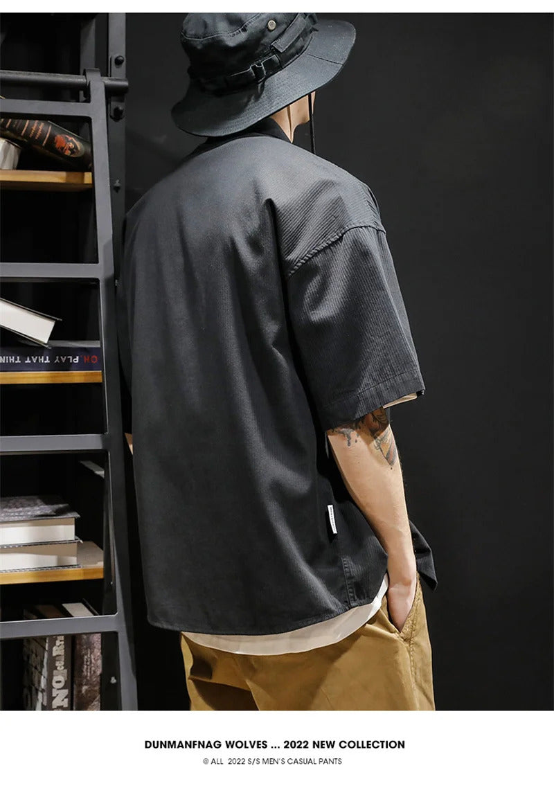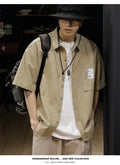 衬衫男2025 Vintage Short Sleeve Social Shirt Men's Loose Casual Cardigan Cargo Shirt Summer Fashion Preppy Streetwear Plain Blouses