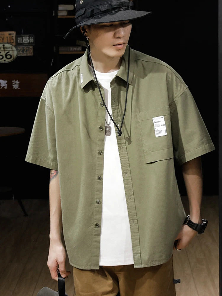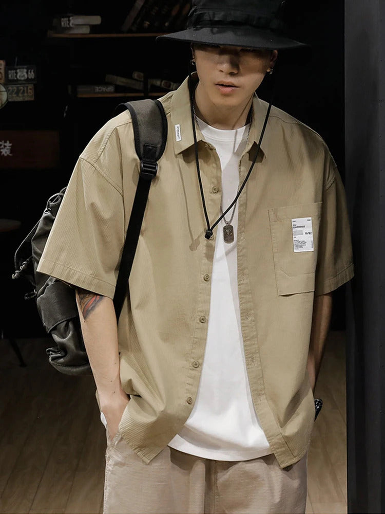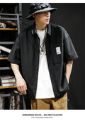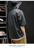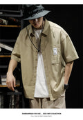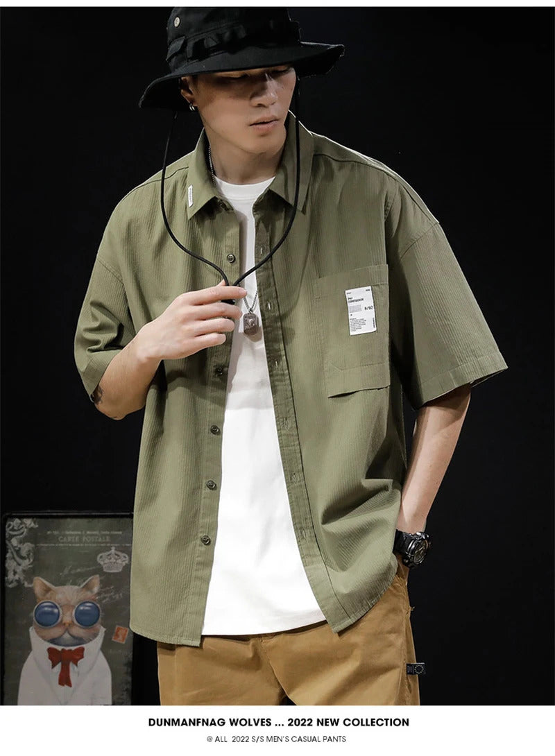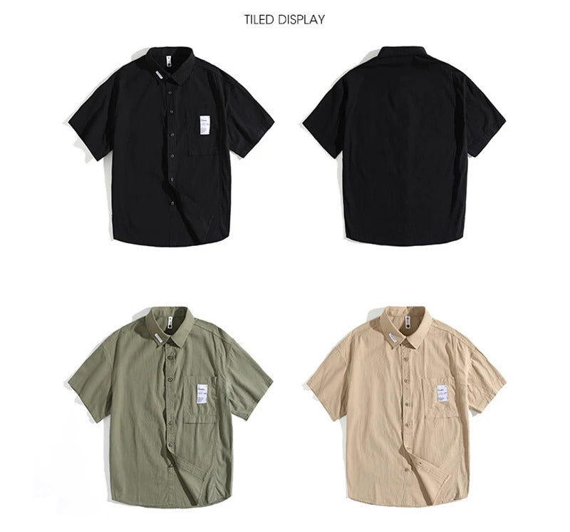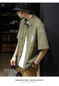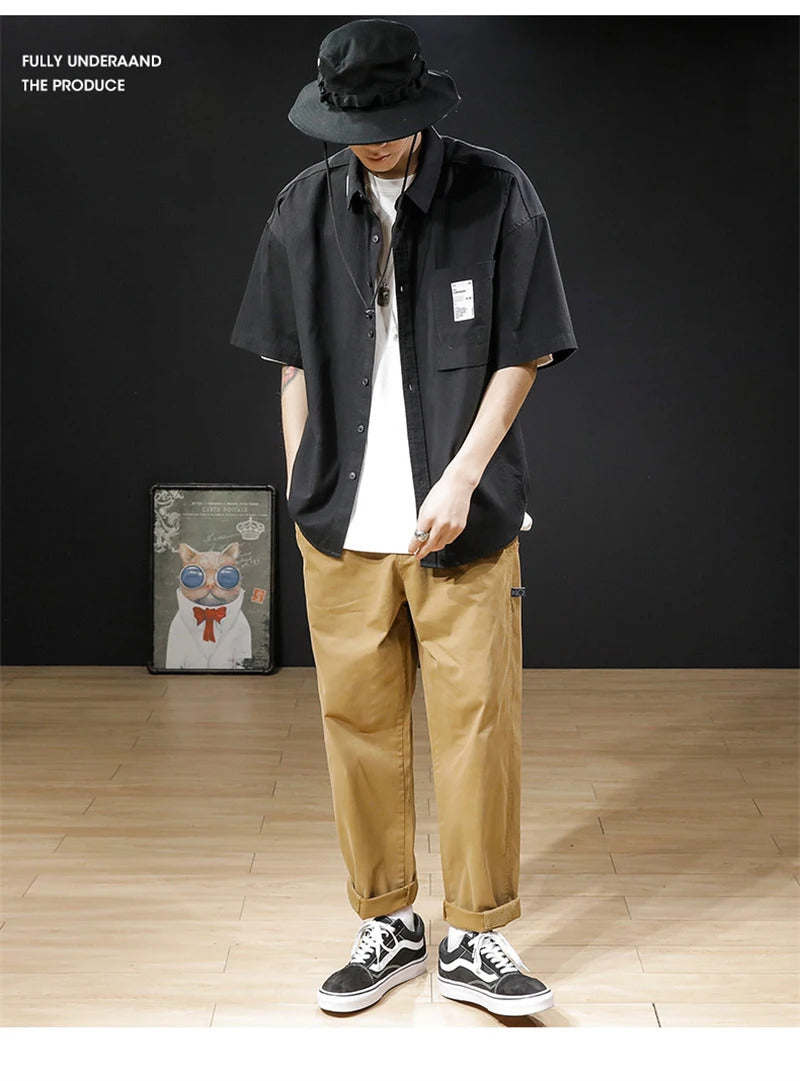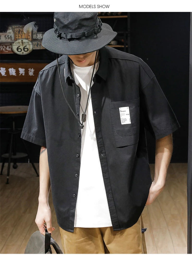 衬衫男2025 Vintage Short Sleeve Social Shirt Men's Loose Casual Cardigan Cargo Shirt Summer Fashion Preppy Streetwear Plain Blouses
