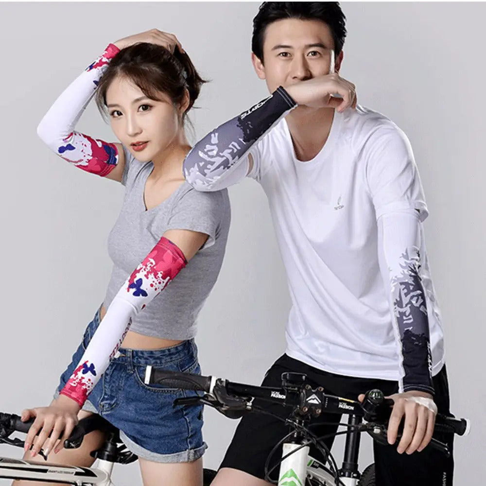 防晒冰袖女2Pcs New Sportswear Basketball Running Fishing Cycling Summer Cooling Outdoor Sport Arm Sleeves Arm Hand Cover Sun UV Protection