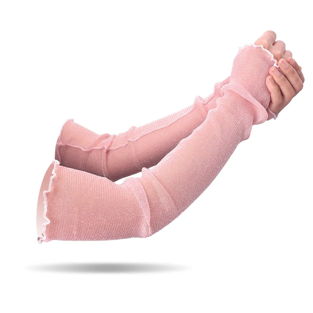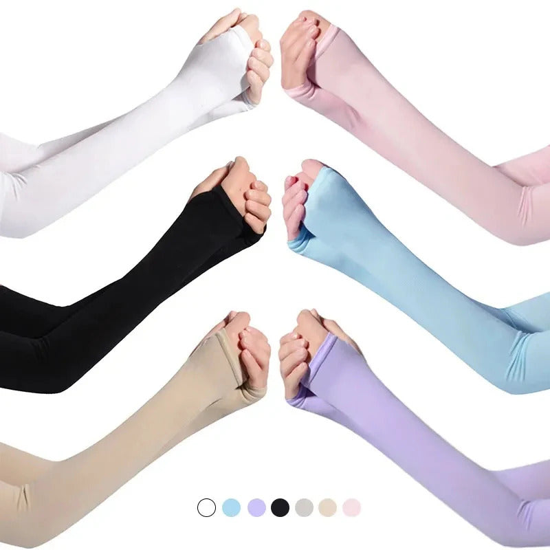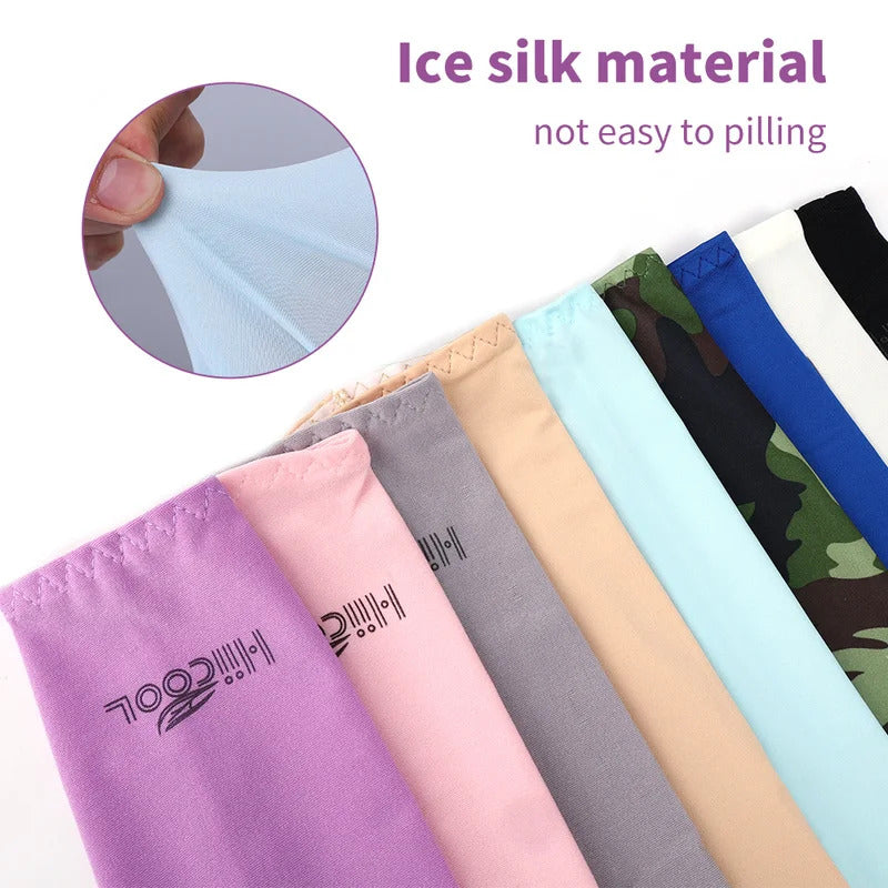 防晒冰袖女2pcs Outdoor Cycling Long Finger Ice Silk Cool Arm Sleeves Ice Silk Sleeves Breathable Quick Dry UV Sunscreen Cuff Accessories