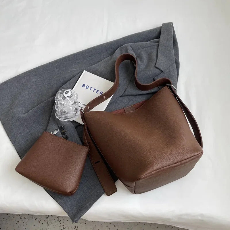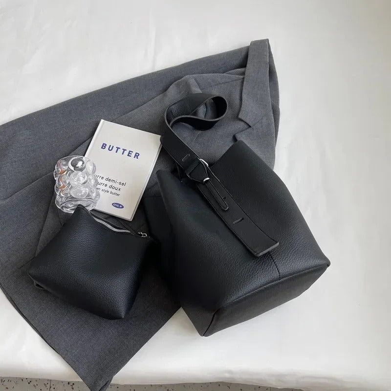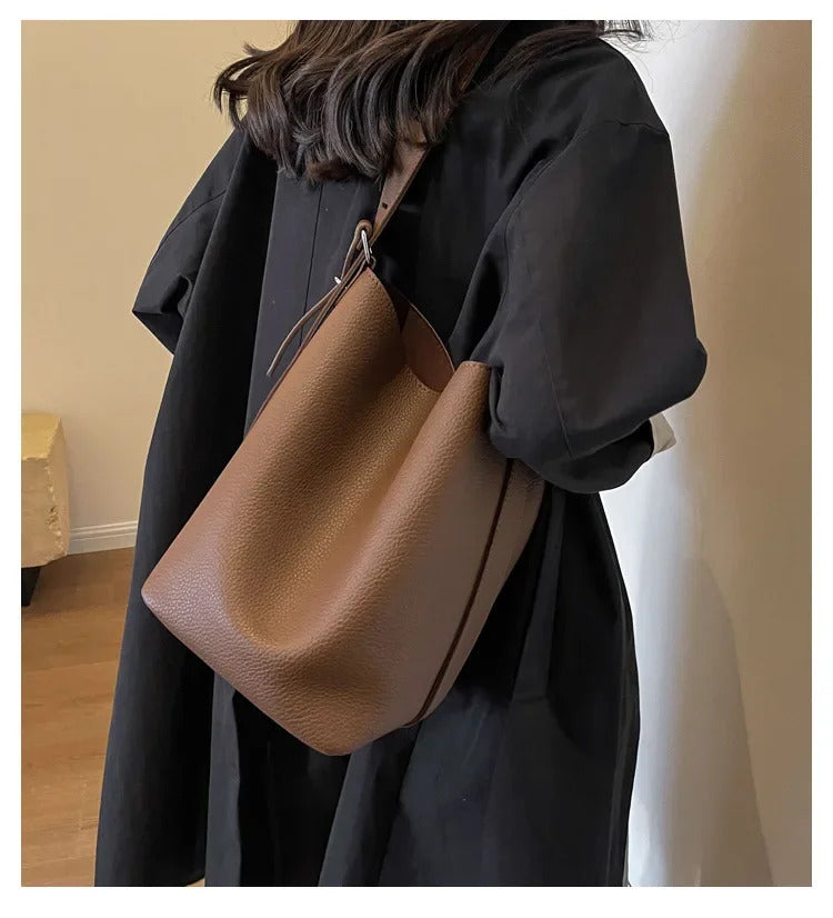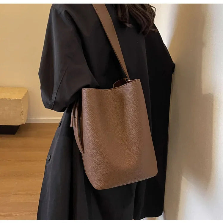 包包2pcs/set Retro Small Solid Color Leather Shoulder Bags for Women 2024 Designer Korean Fashion Female Handbags Underarm Bag Purse