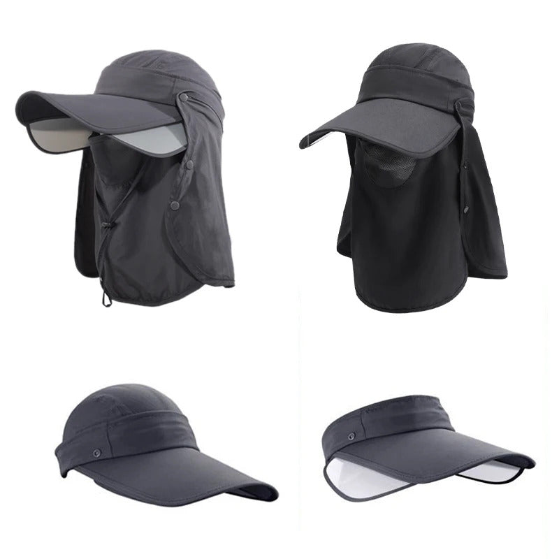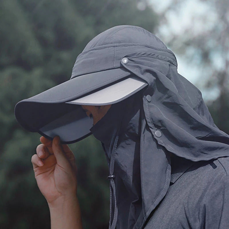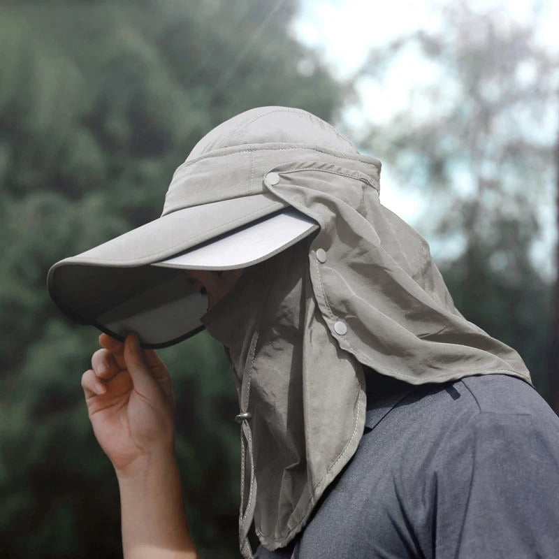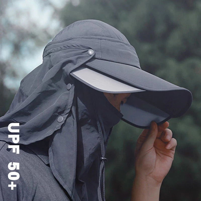 防晒帽男3PCS Men Bucket Hat with Shawl and Face Cover Summer Anti-UV Outdoor Hiking Fishing Hat Removable Face Neck Protection Panama