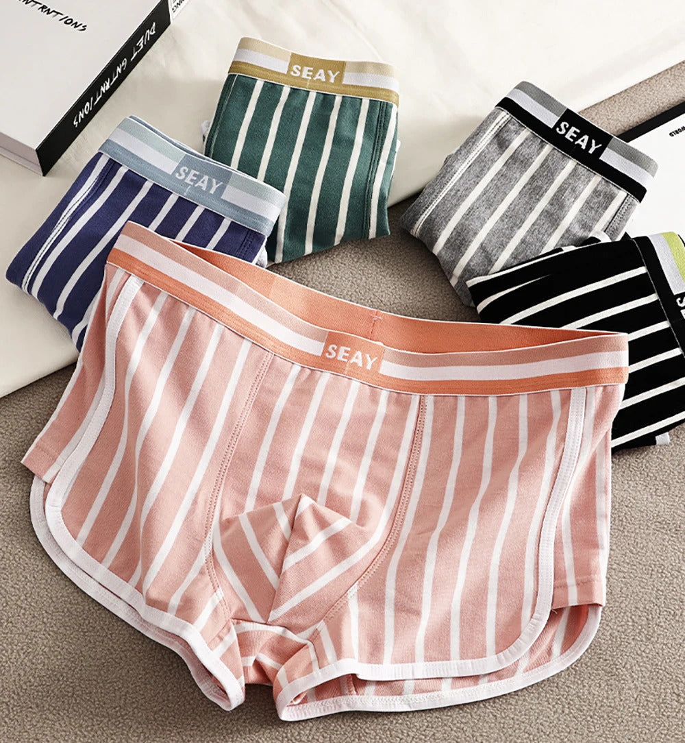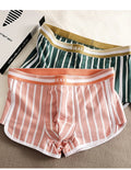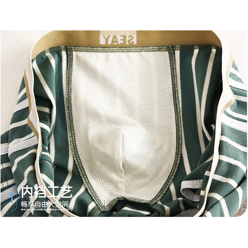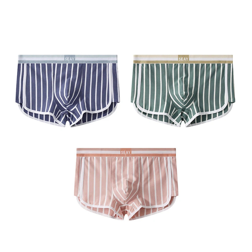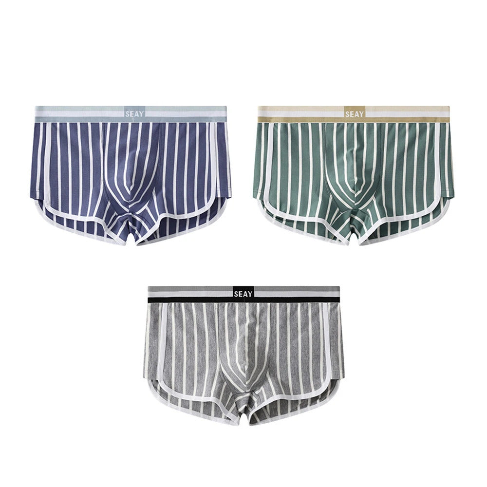 3PCS/Pack 100% Cotton Breathable Big U Mesh Crotch Men's Panties Trendy Striped Mens Underwear High Elastic Waist Underpants