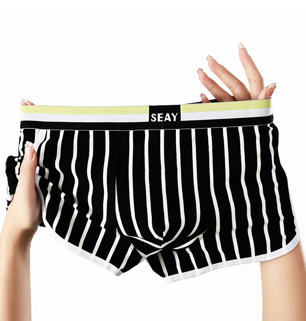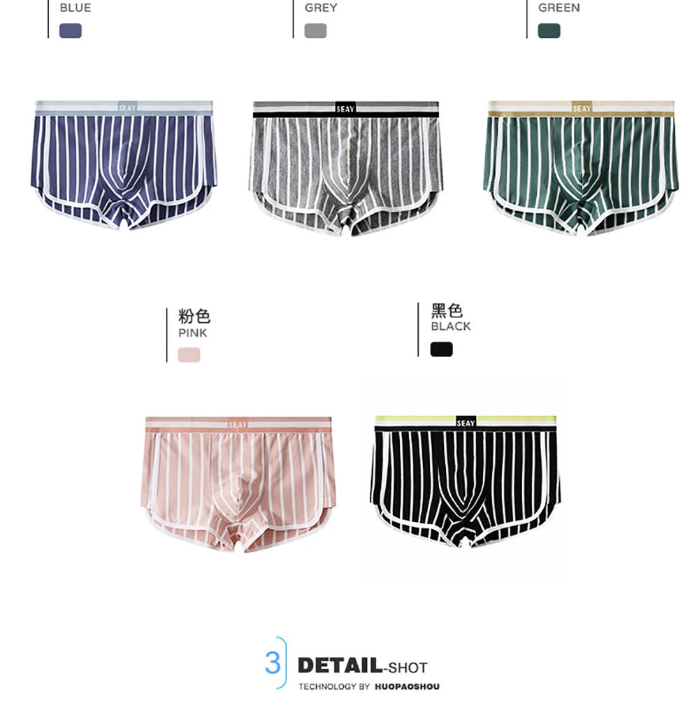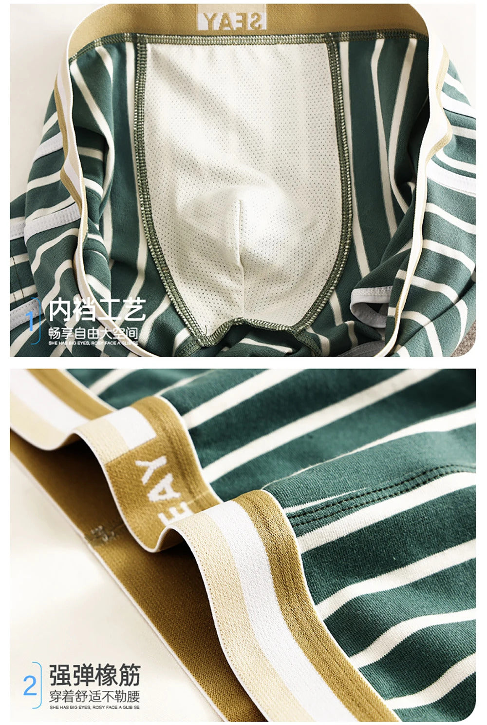 内衣男3PCS/Pack 100% Cotton Breathable Big U Mesh Crotch Men's Panties Trendy Striped Mens Underwear High Elastic Waist Underpants