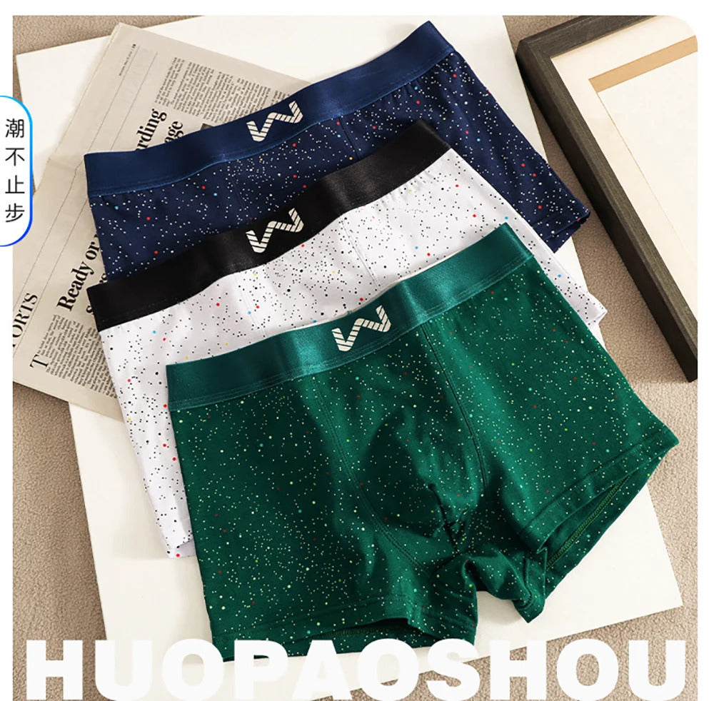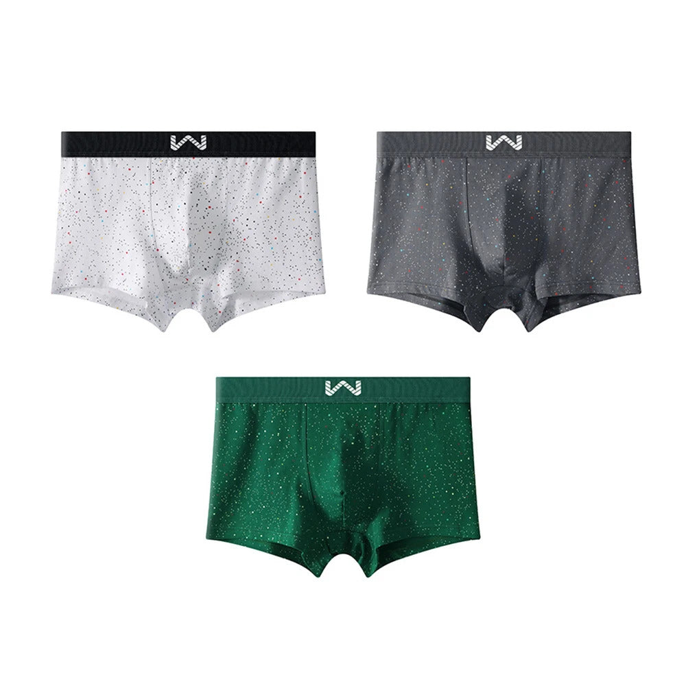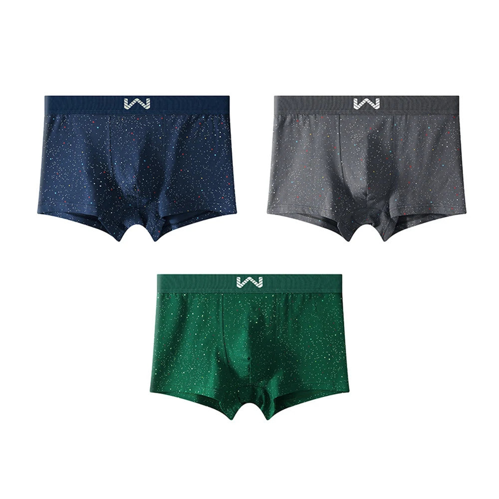 内衣男3PCS/Pack 100% Cotton Breathable Men's Panties Big U Crotch Underpants Trendy Starry Sky Print High Elastic Waist Boxers Hombre