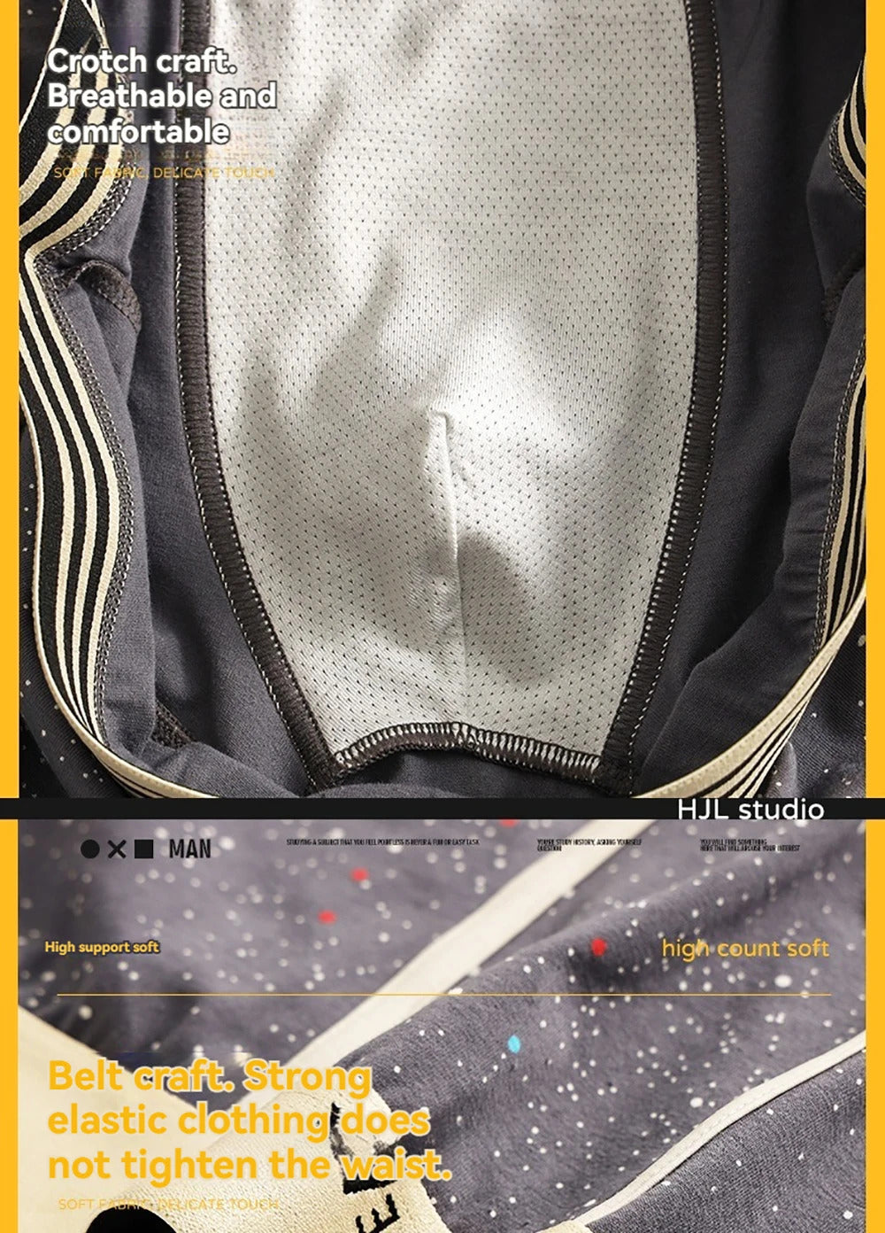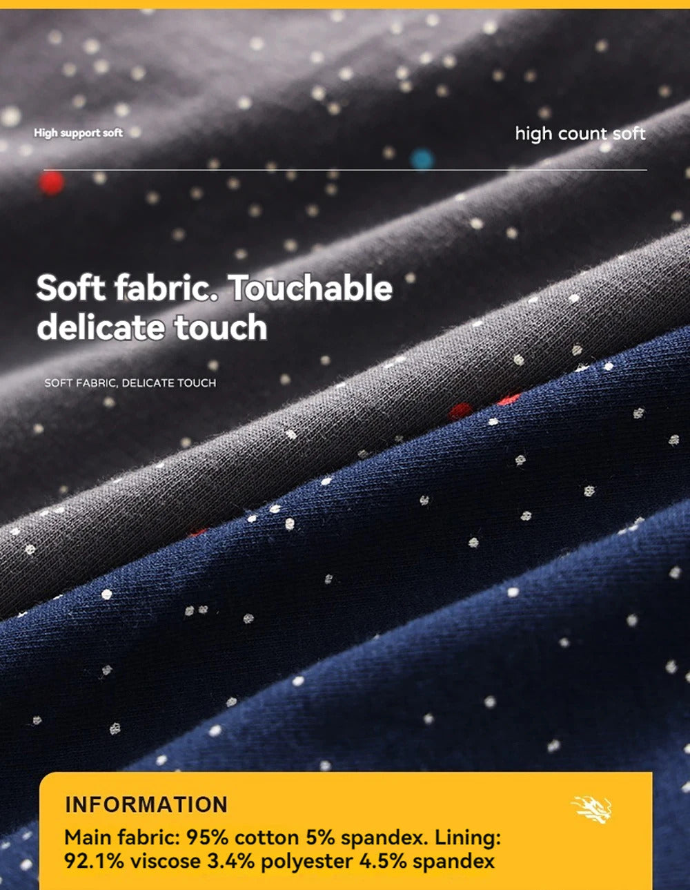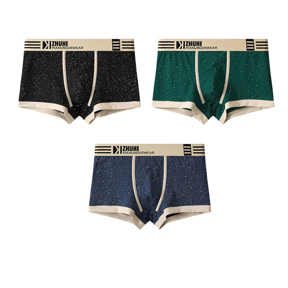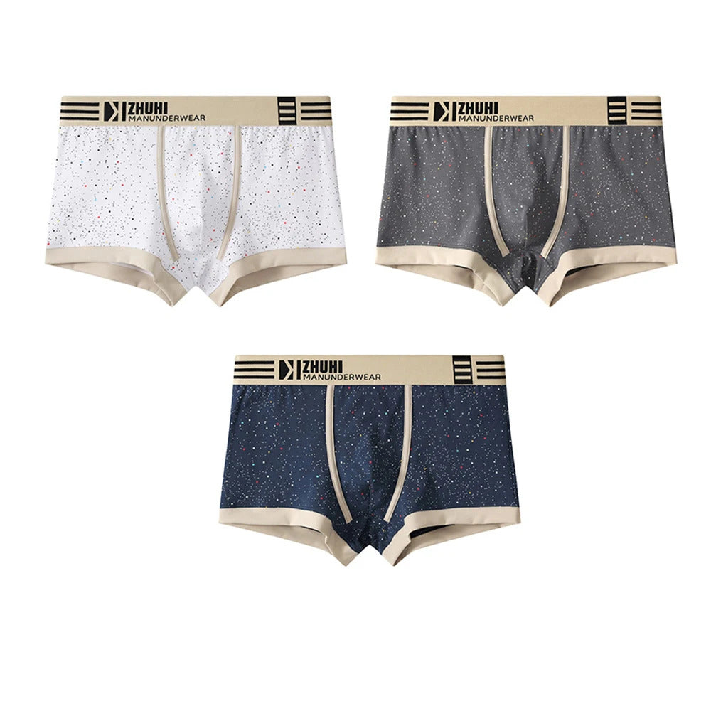 3PCS/Pack 100% Cotton Smooth Soft Mens Underwear Gifts Breathable Big U Mesh Crotch Underpants Trendy Spot Print Boxers Hombre