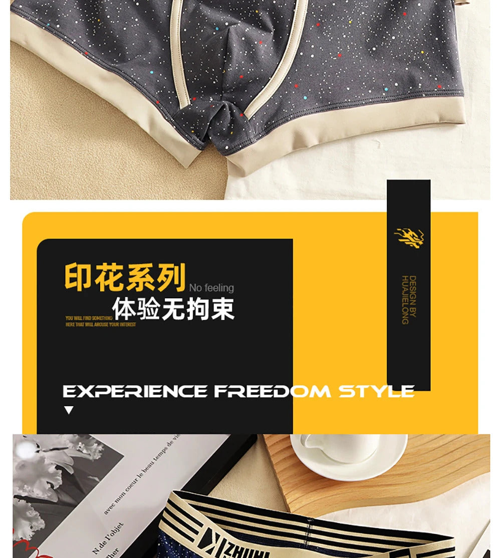 内衣男3PCS/Pack 100% Cotton Smooth Soft Mens Underwear Gifts Breathable Big U Mesh Crotch Underpants Trendy Spot Print Boxers Hombre