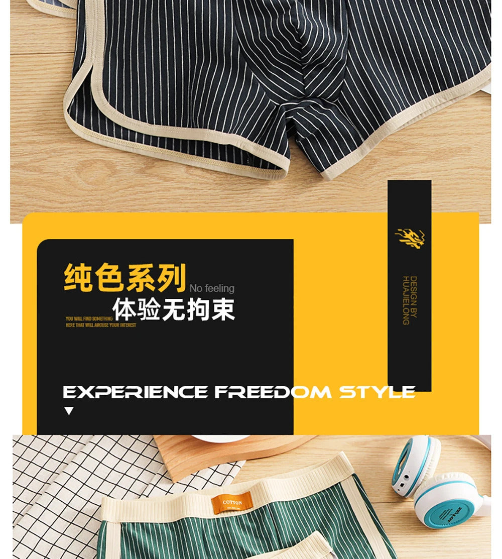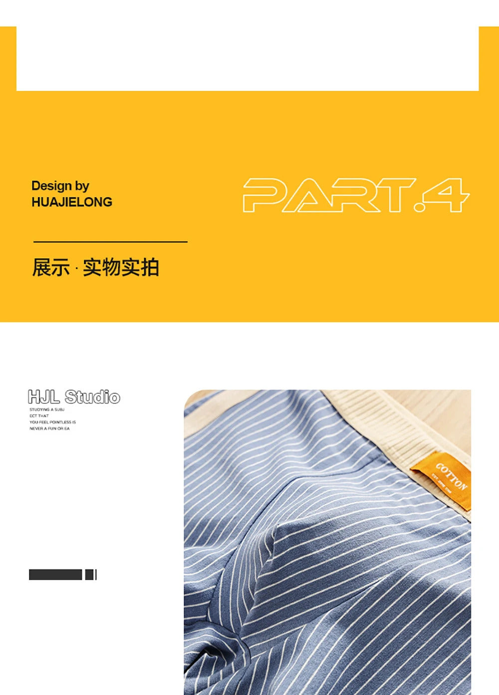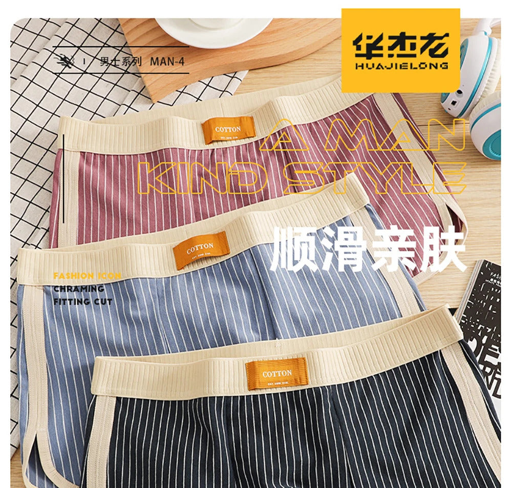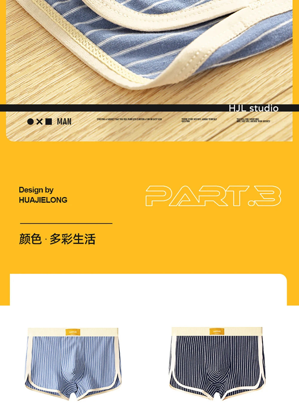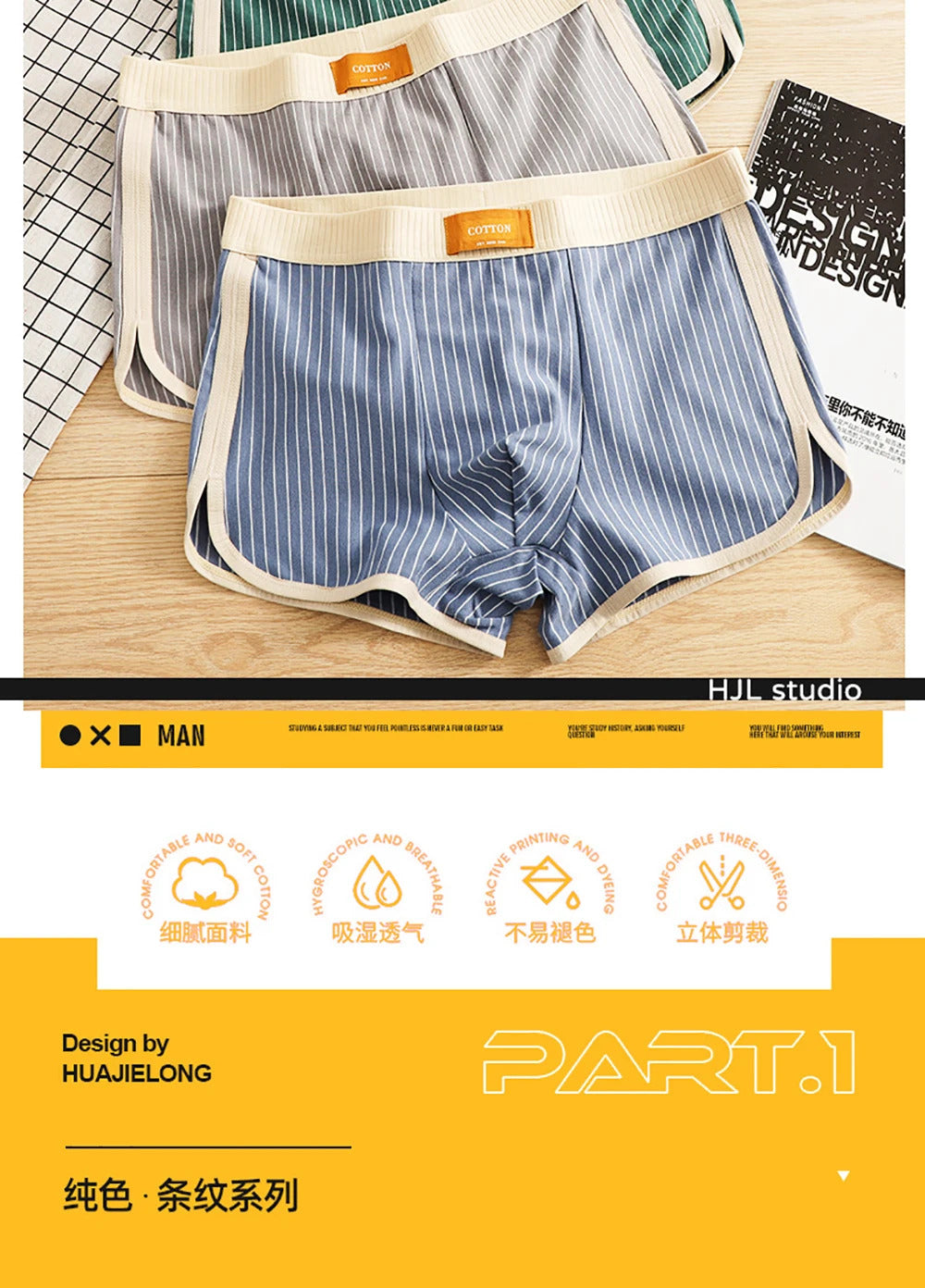 内衣男3PCS/Pack 100% Cotton Soft Underpants Men Breathable Crotch Underwear Trendy Striped Men's Panties High Elastic Waist Boxers