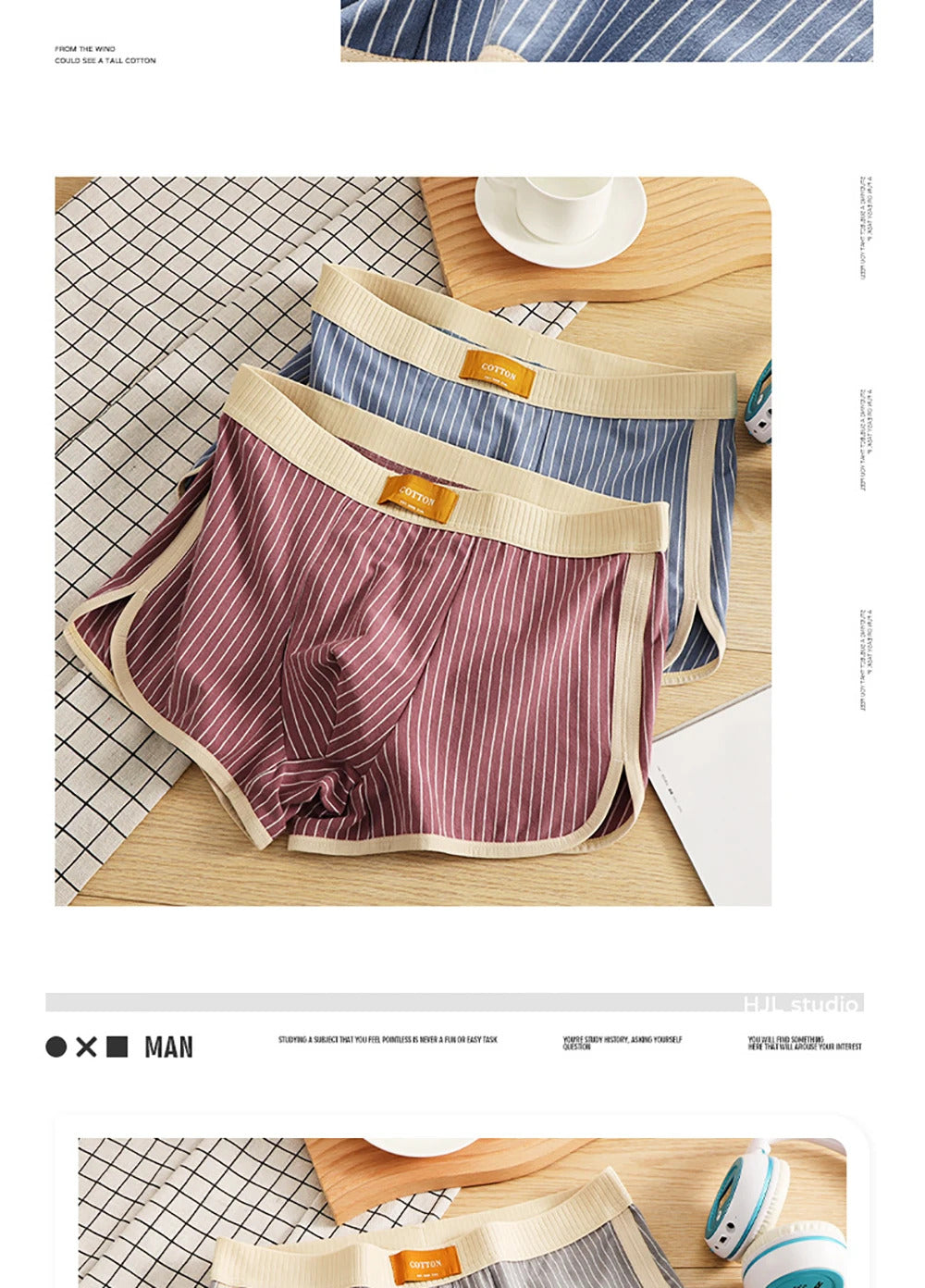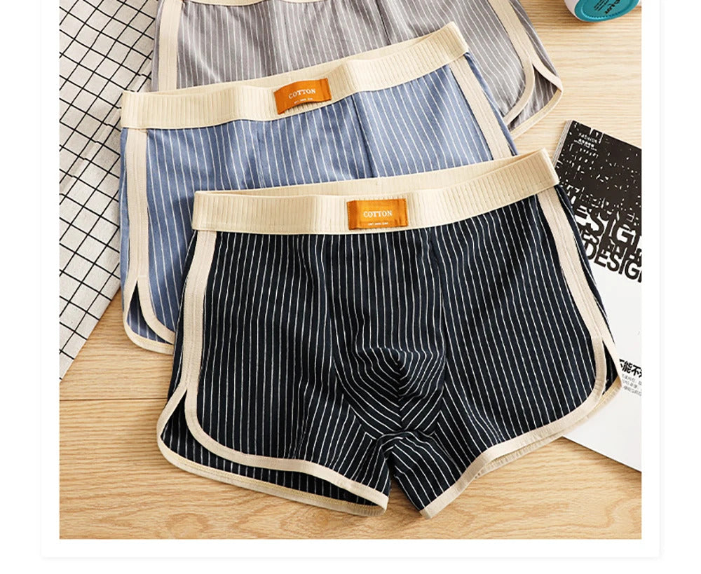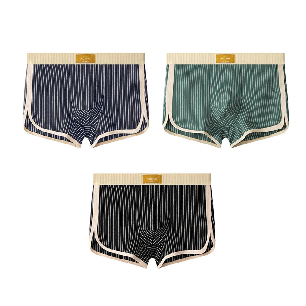 3PCS/Pack 100% Cotton Soft Underpants Men Breathable Crotch Underwear Trendy Striped Men's Panties High Elastic Waist Boxers
