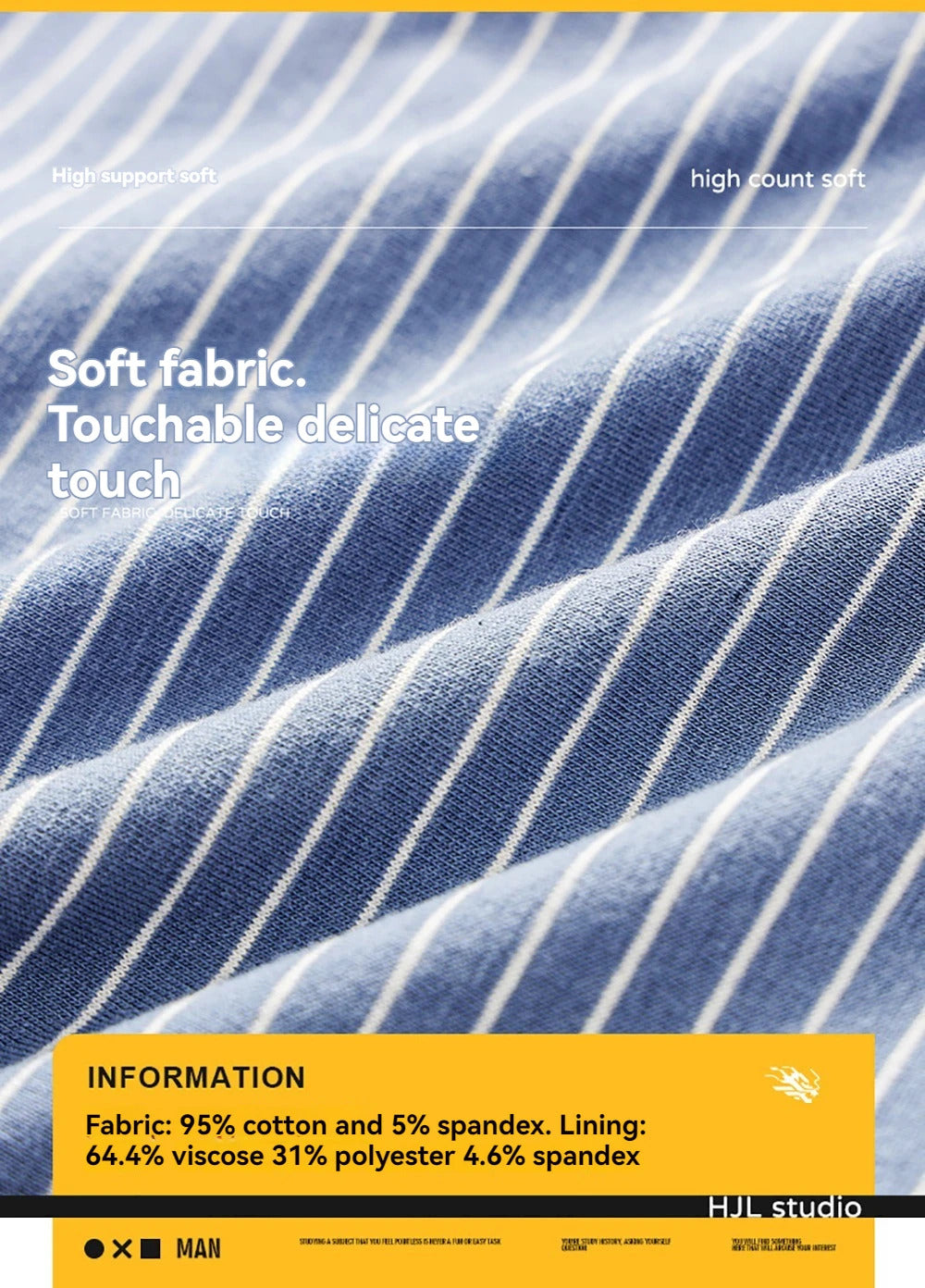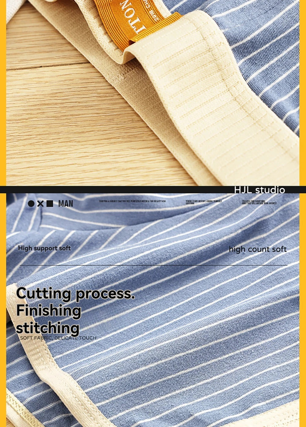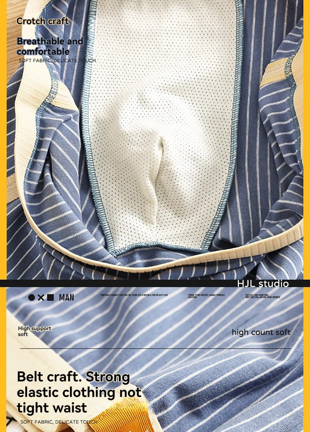 3PCS/Pack 100% Cotton Soft Underpants Men Breathable Crotch Underwear Trendy Striped Men's Panties High Elastic Waist Boxers
