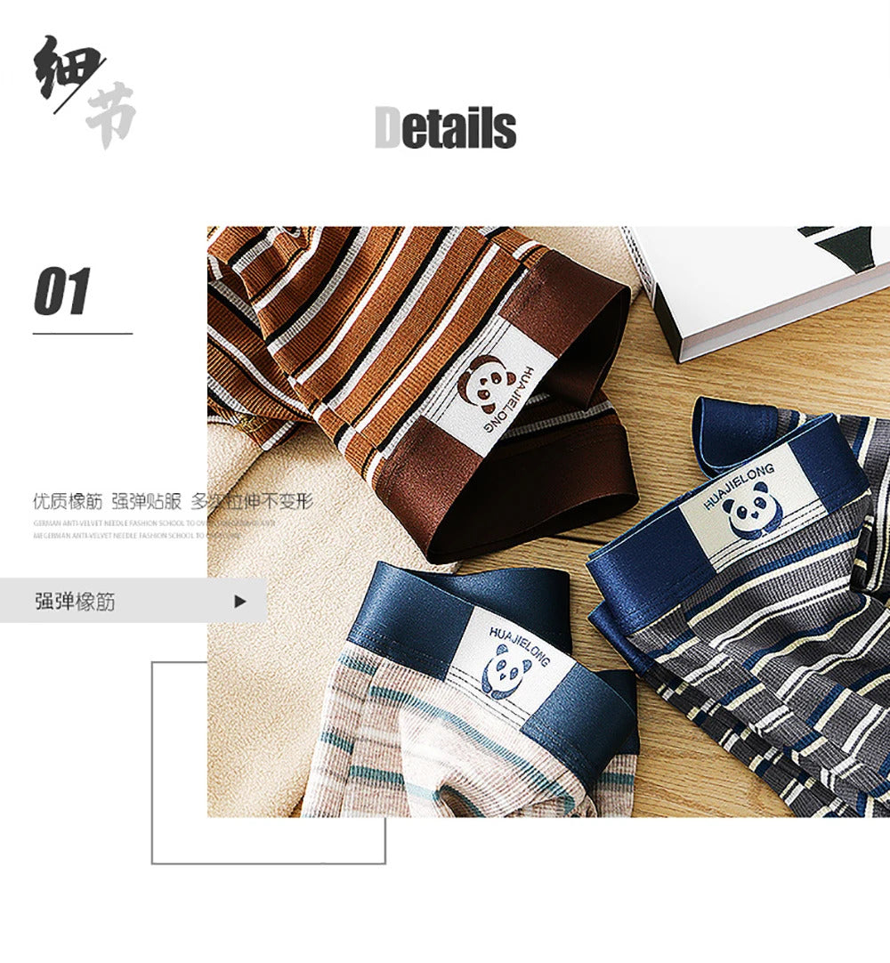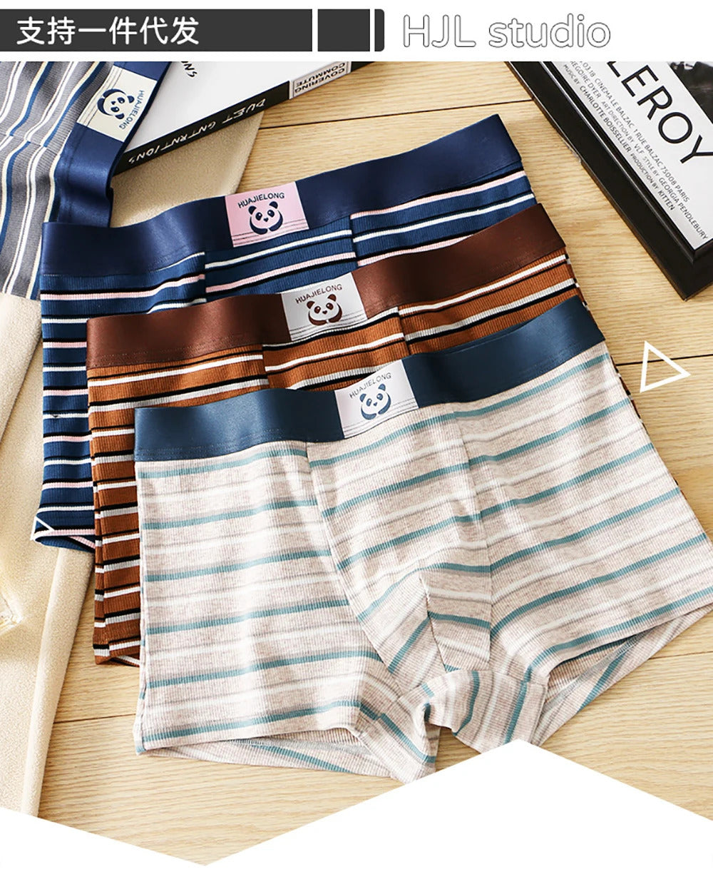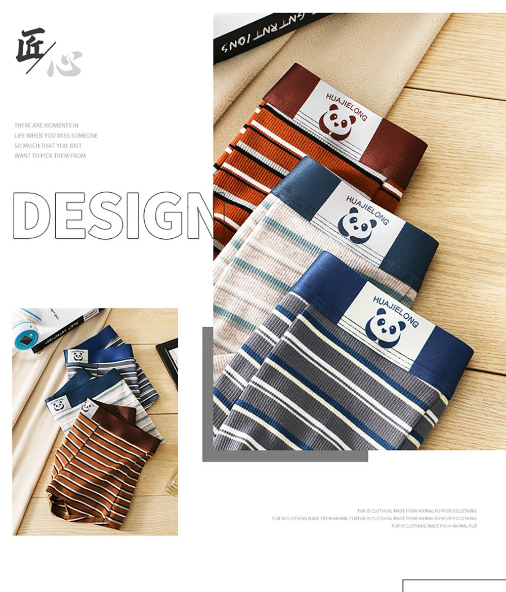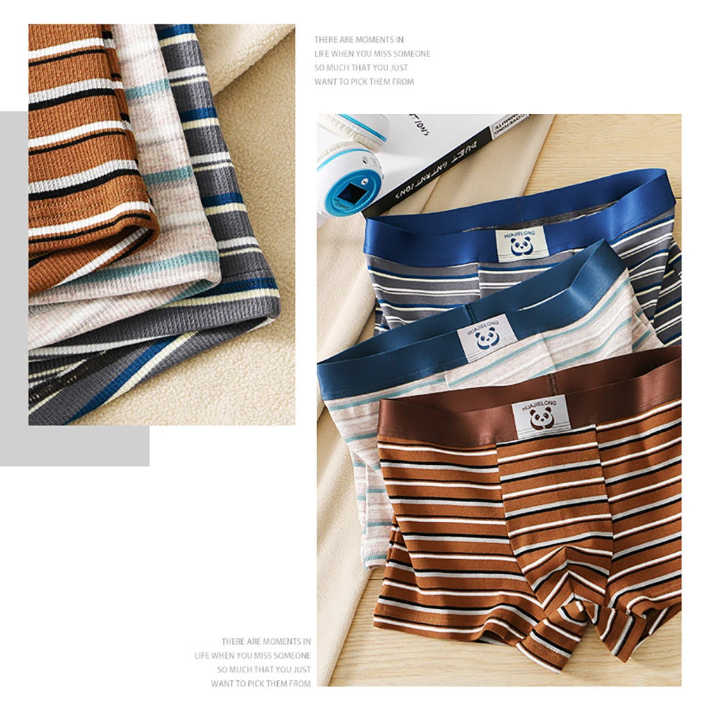 内衣男3PCS/Pack 100% Cotton Sweating Absorbent Underwear For Men Fashion Striped Panda Print Underwear High Elastic Waistband Boxers