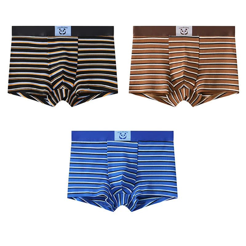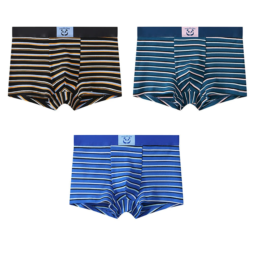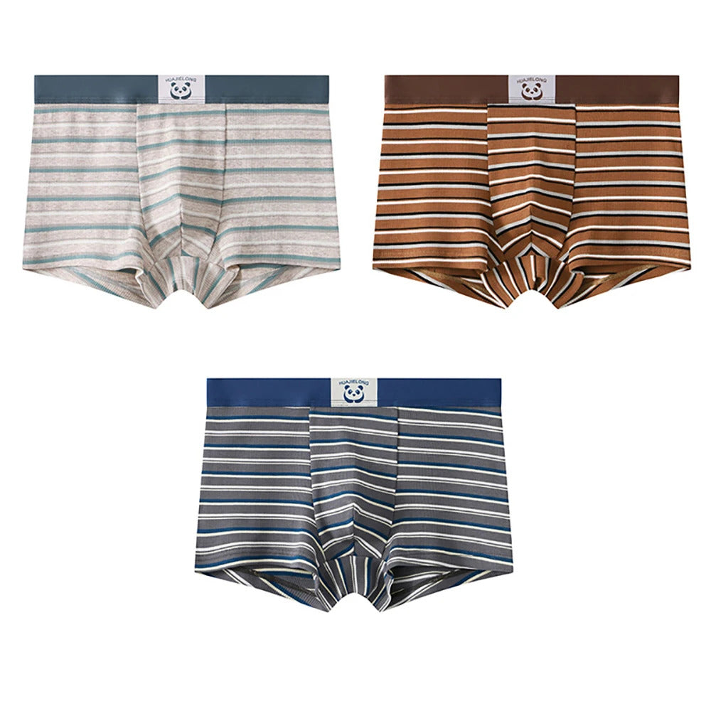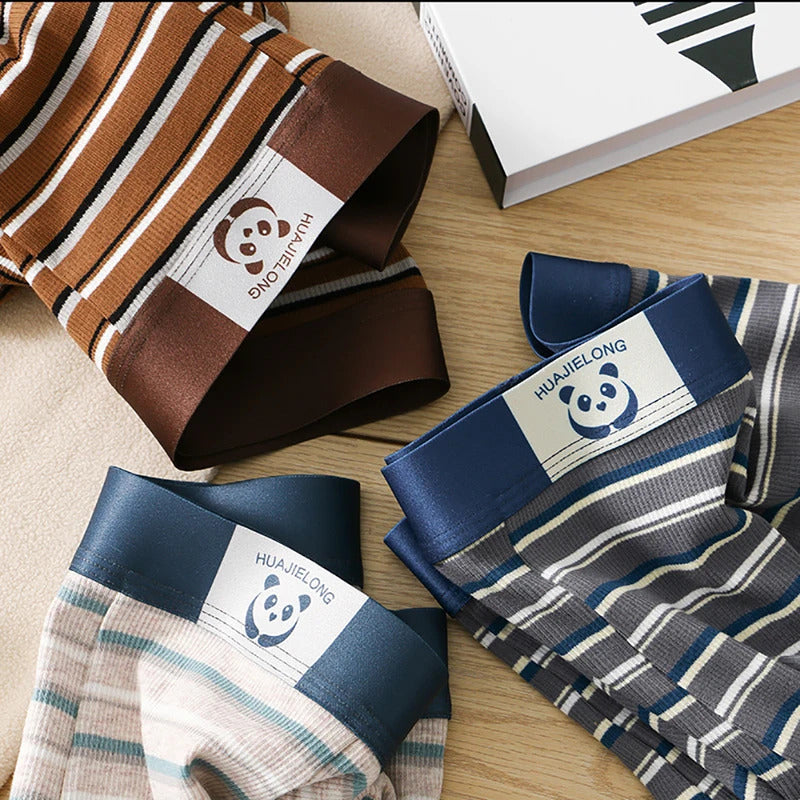 3PCS/Pack 100% Cotton Sweating Absorbent Underwear For Men Fashion Striped Panda Print Underwear High Elastic Waistband Boxers