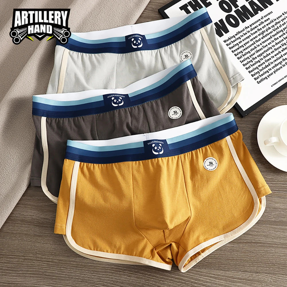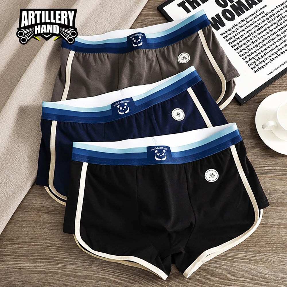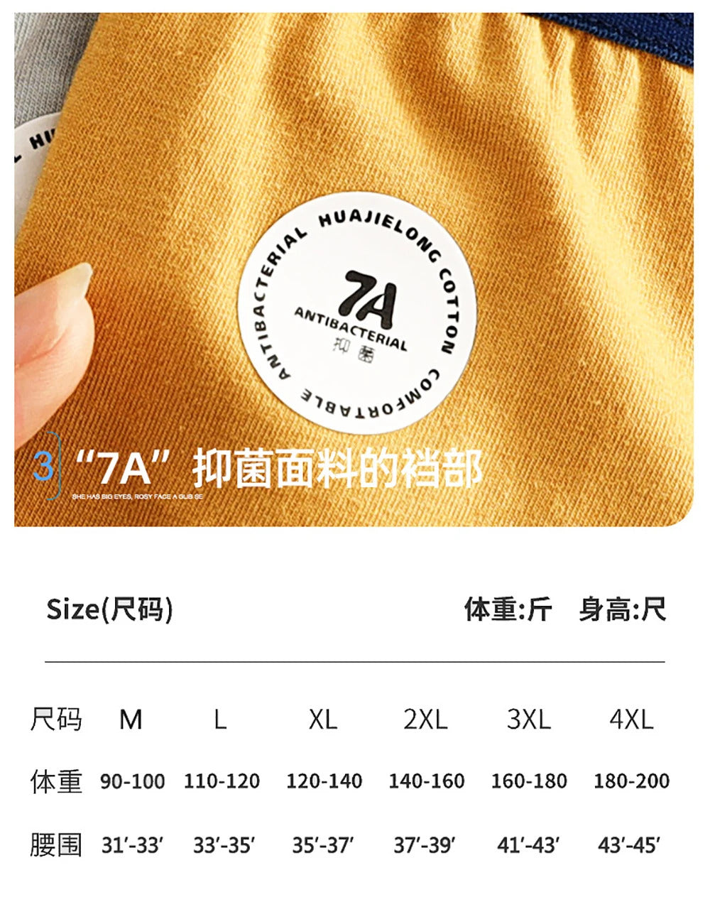 内衣男3PCS/Pack 7A Antibacterial Big U Mesh Breathable Crotch Men's Panties 100% Cotton Trendy Underpants High Elastic Waist Boxers