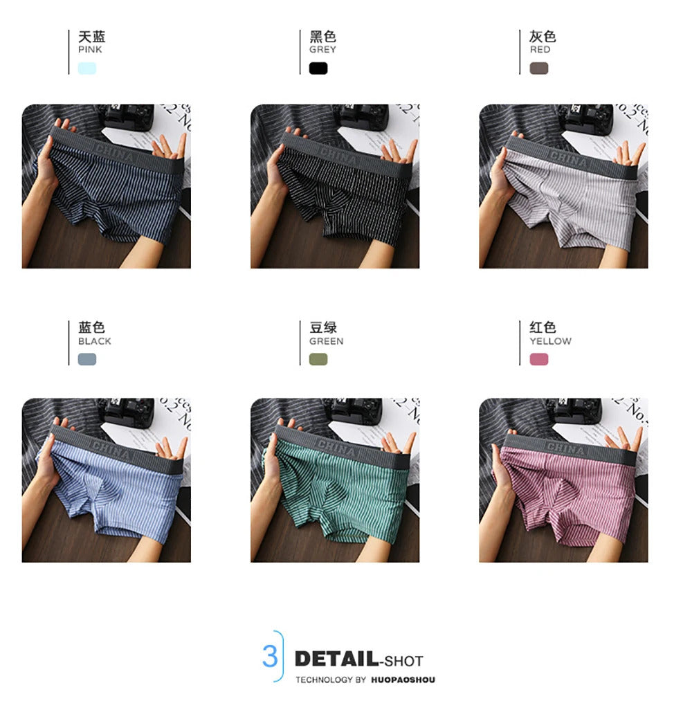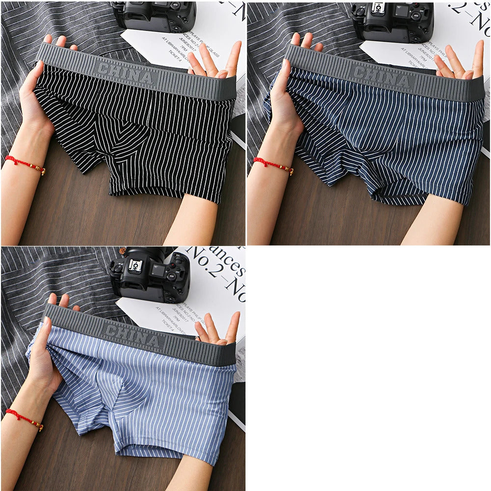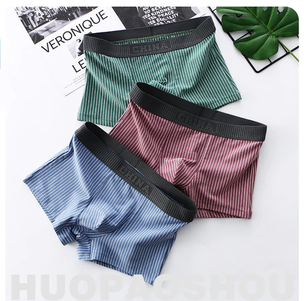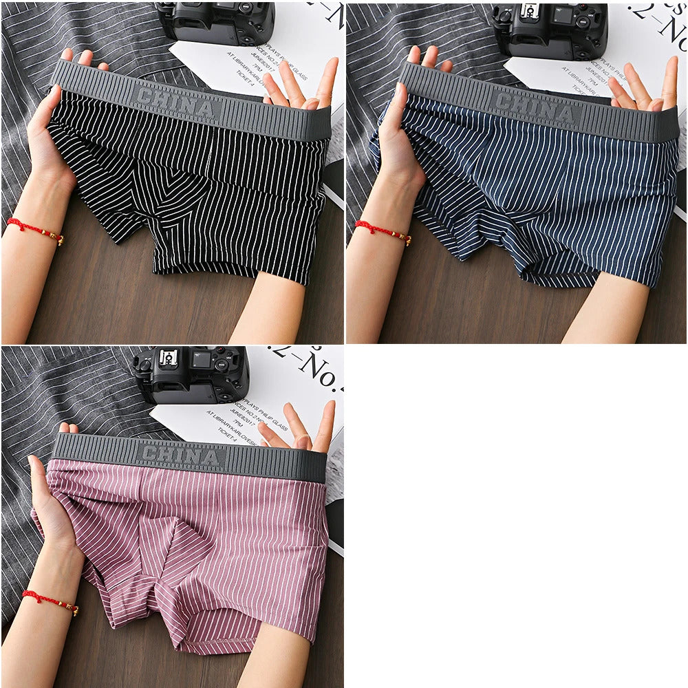 内衣男3PCS/Pack 95% Cotton Double-layer Hygroscopic Crotch Underpants Men Fashion Striped Boxers High Elastic Men's Panties Underwear