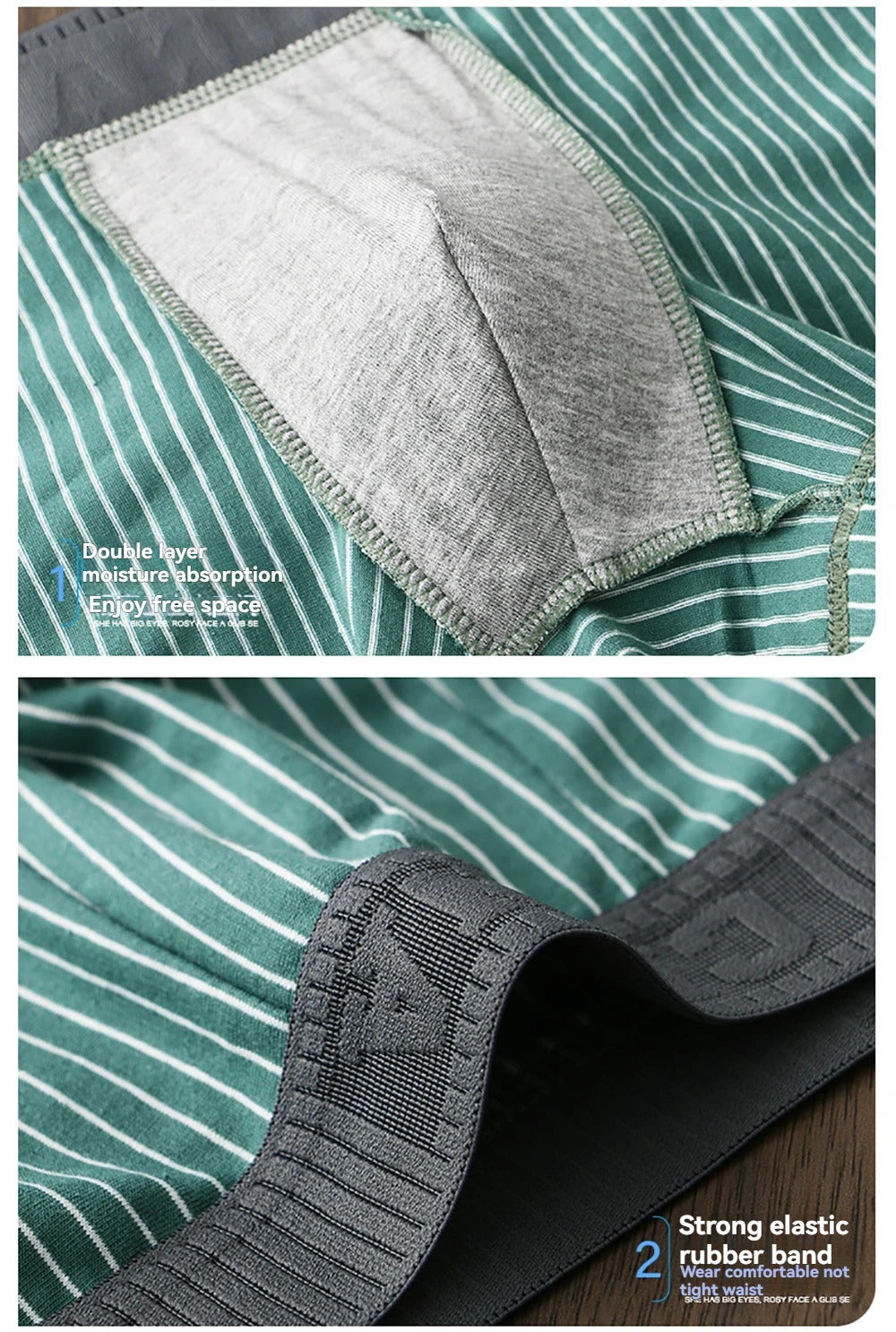 3PCS/Pack 95% Cotton Double-layer Hygroscopic Crotch Underpants Men Fashion Striped Boxers High Elastic Men's Panties Underwear